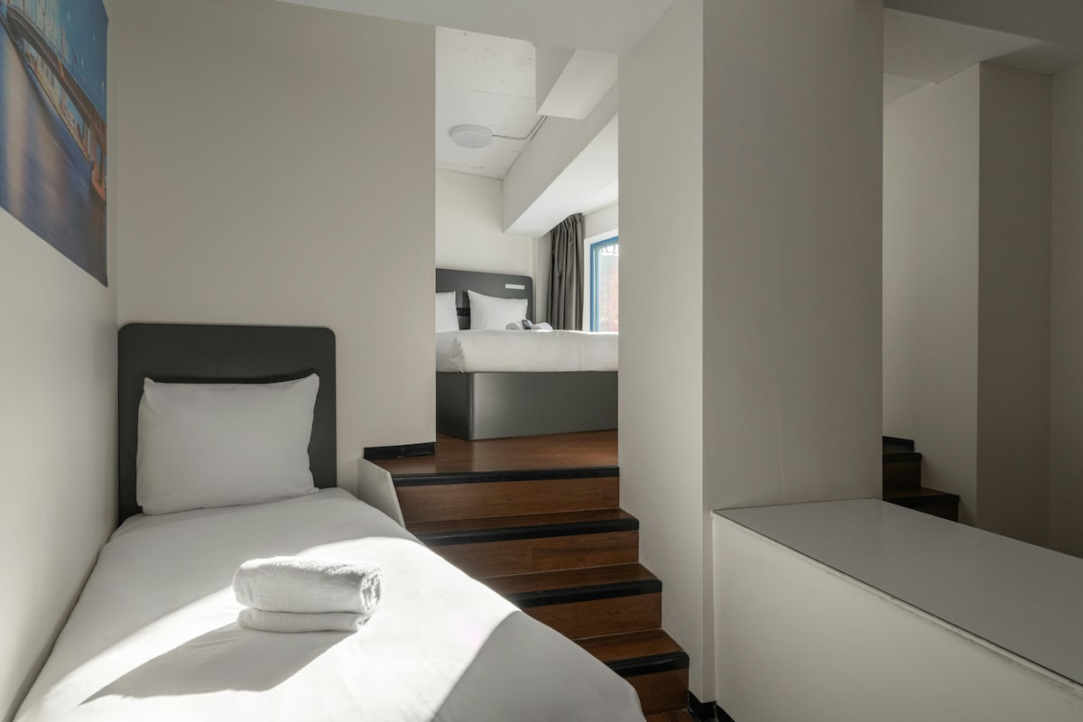 Este quarto familiar luminoso e espaçoso vem com uma cama de casal e duas camas de solteiro, ar-condicionado, TV montada na parede e Wi-Fi gratuito. Todos os quartos do easyHotel Rotterdam oferecem conforto e limpeza a um preço econômico para permitir que você passe um tempo explorando nossa grande cidade fora do seu quarto de hotel. Tamanho do quarto 20m ². Observe que o imposto de turismo da cidade de Roterdã de 6,5% não está incluído no preço do Airbnb e deve ser pago diretamente ao hotel.