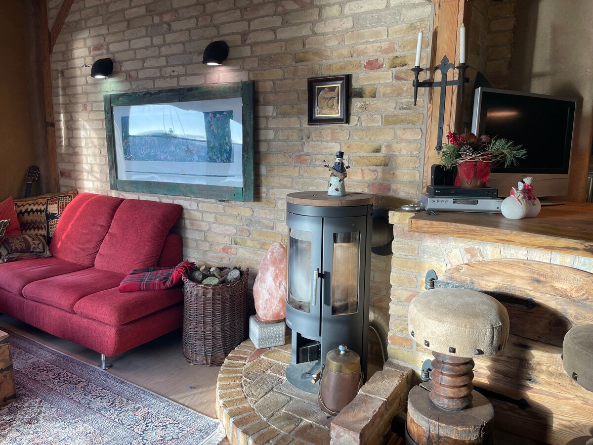 Deixe-se encantar pela sensação única de viver em nossa casa de campo com uma lareira aconchegante. Para uma pausa ideal ou um home office diferente. :-) O interior foi decorado com muito amor e atenção aos detalhes, com um tema de cabana de caçador. Entre, sinta-se confortável e deixe a rotina para trás... Aqui você pode combinar trabalho e bem-estar de uma forma maravilhosa. Ou simplesmente deixe sua alma vagar e aproveite o tempo!