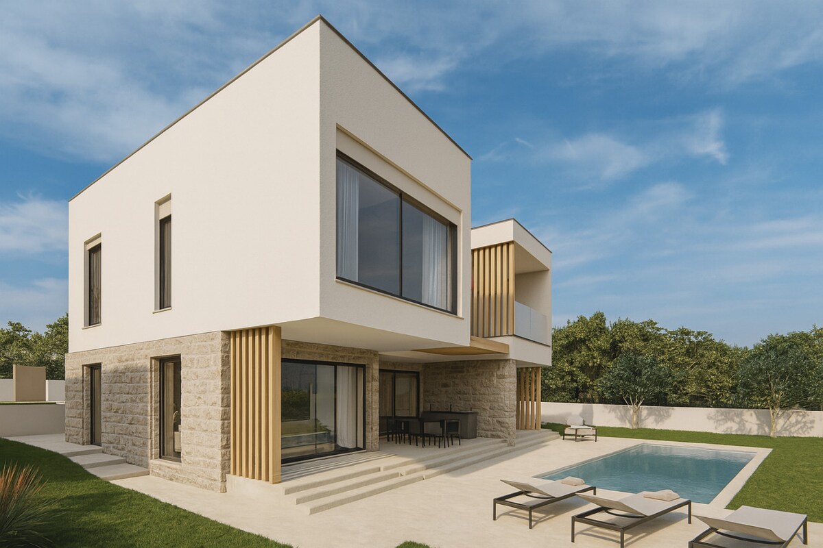 Desfrute de uma villa acolhedora e moderna de 303 m² com 4 quartos king-size com banheiro privativo, projetada para conforto, privacidade e momentos de calma. Nova construção. Últimas tarefas e imagens a serem feitas. Ainda reservável. • Piscina aquecida de água salgada • Jacuzzi extra-quente • Vistas para o mar e para a montanha • Cozinha totalmente equipada + Smart TV • Wi-Fi rápido de fibra • Cozinha, lounge e sala de jantar ao ar livre • Área tranquila, a 1 km da praia • Perto de Split e Trogir • Self check-in inteligente e atendimento rápido ao anfitrião • Perfeito para famílias, casais e amigos