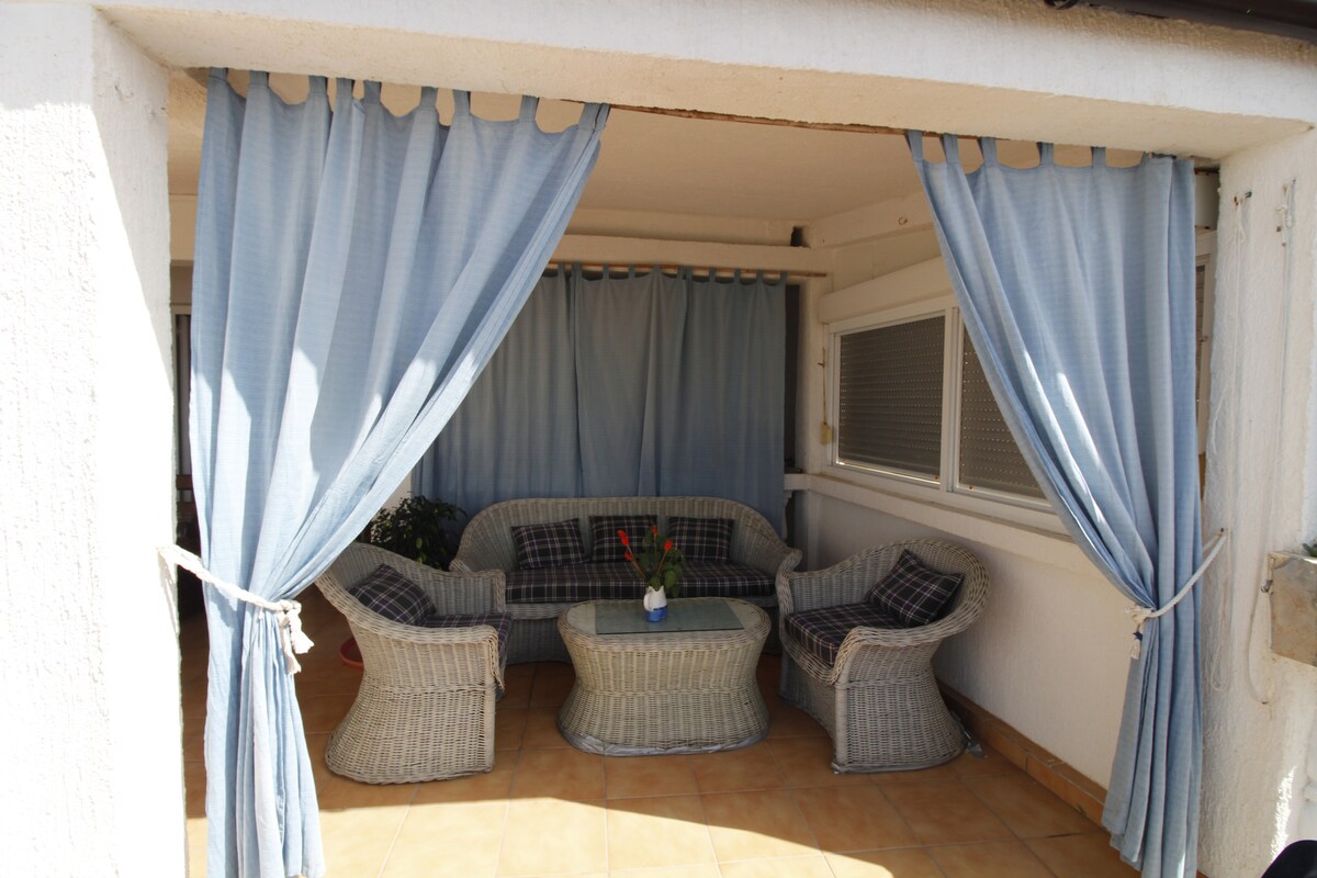A casa fica a apenas 3 minutos do porto.A área do jardim tem uma superfície de 50 m2.Está cercada por vegetação e muitas plantas e flores.O terraço tem uma grande mesa onde você pode desfrutar de seu dia à sombra. Também há comodidades para churrascos. A praia fica a apenas 5 minutos a pé da casa. Além disso, os supermercados e agências de turismo estão muito perto da casa. Temos o nosso próprio lugar de estacionamento atrás da casa, se você tiver o seu próprio carro. Acesso Wi-Fi gratuito disponível.