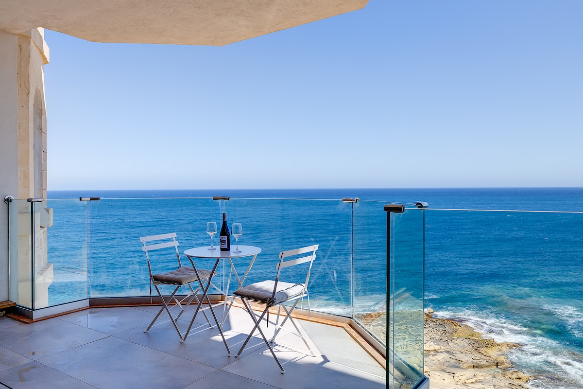 Terraço à beira-mar com vista deslumbrante de Valletta