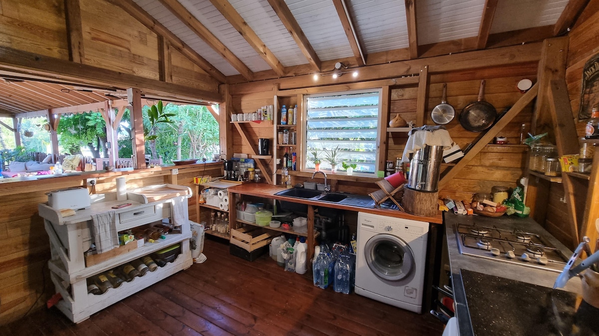 La kabane balisiene ,lieux paisible offre un séjour détente pour toute la famille.Perchée au sommet d’une petite crique de sable blanc et de galet -vu jardin ,quelque pas plus loin un petit sentier vous amène directement au lagon de bois jolan.Citerne en ca de coupure d’eau,une petite piscine privée sur votre terrasse accompagne vos délicieux ti- punch locaux. Accès direct spot de surf et de kite par un petit portillon en face de votre logement .Nous vous attendons chaleureusement.