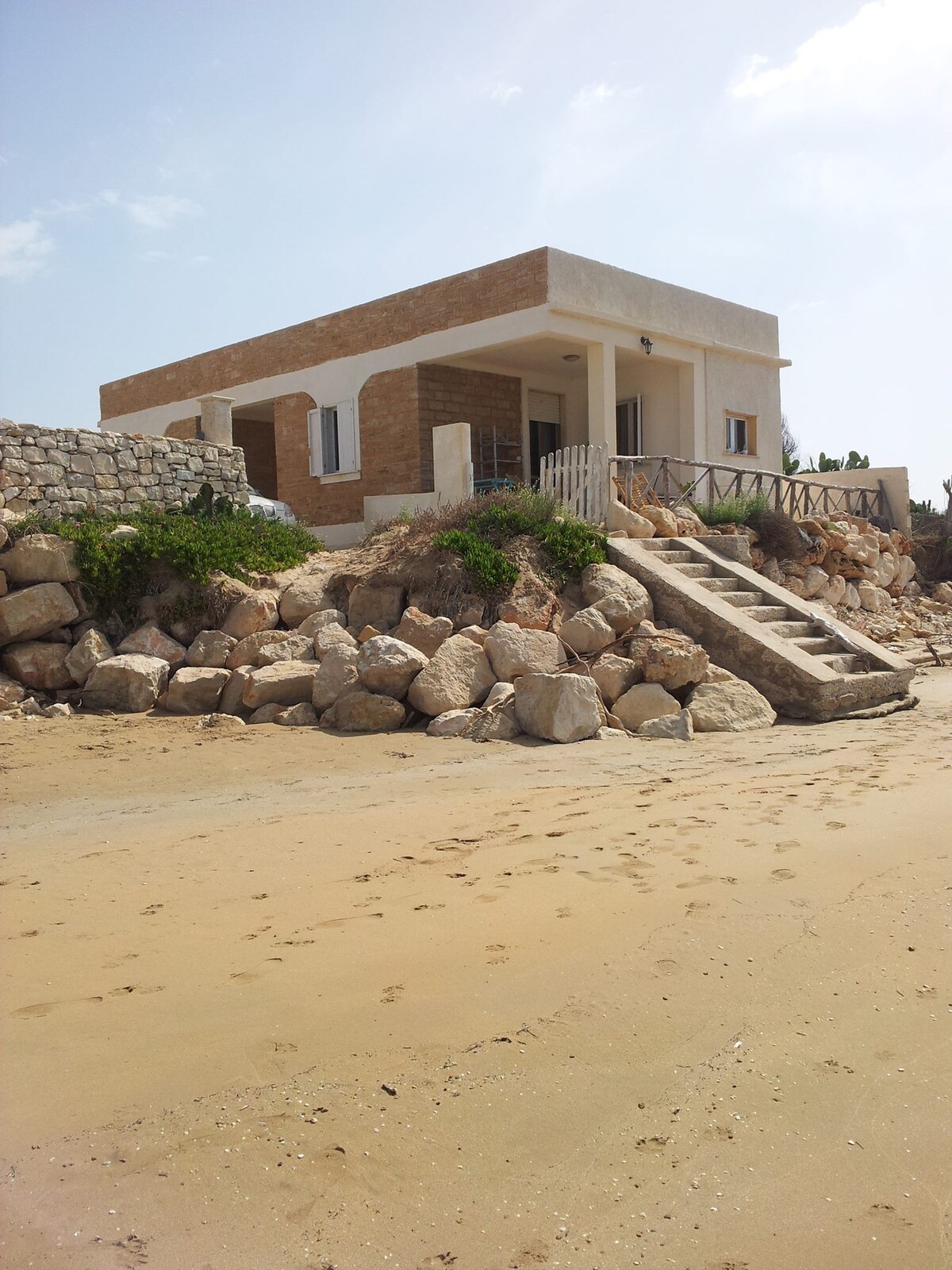 Linda vila a 30 passos do mar, grandes espaços ao ar livre, área de relaxamento, churrasqueira, vagas de estacionamento, 2 quartos duplos, 1 individual com duas camas, cozinha, sala de estar com lareira, banheiro, lavanderia, varanda grande, chuveiro ao ar livre com água quente, ideal para famílias com crianças passarem as férias em total relaxamento e com um mar esplêndido logo após o portão. N.B. Roupa de cama e toalhas sob consulta mediante pagamento. Consumo de ar-condicionado com contador