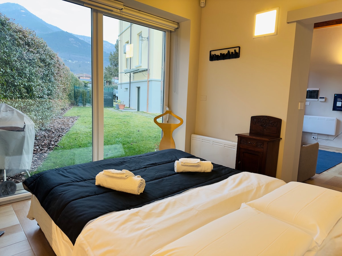 No piso térreo, em um elegante complexo residencial criado a partir da renovação de um mosteiro, no centro da cidade, conveniente para serviços e acessível por transporte público, uma casa com dois quartos, cada um com um banheiro privativo. Os quartos têm vista para um jardim elegante, um antigo claustro do mosteiro, com vista panorâmica para a Sacra di San Michele e o castelo de Avigliana. Cozinha e sala compartilhadas. Meia hora de Turim e 10 minutos dos Lagos de Avigliana.