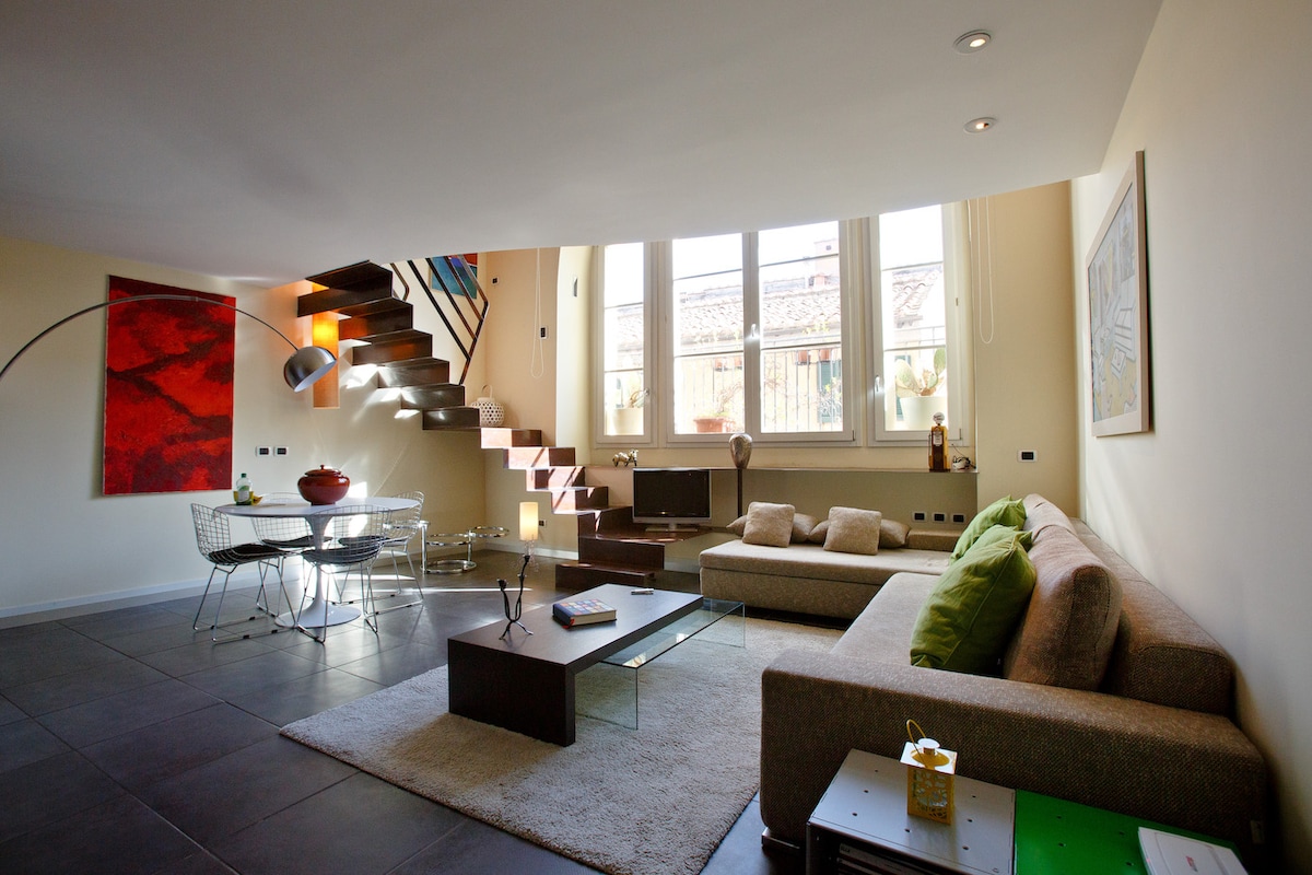 Modern and completely renovated Loft for 3 people. This is a Green solution: 100% renewable energy, completely led lighting, green cleaning products, ecologic Airlite Wall Paint, ecolabel soaps and ethic finance. Connected and close to monuments and amenities. Comfort and professional cleanliness for a wonderful holiday!
