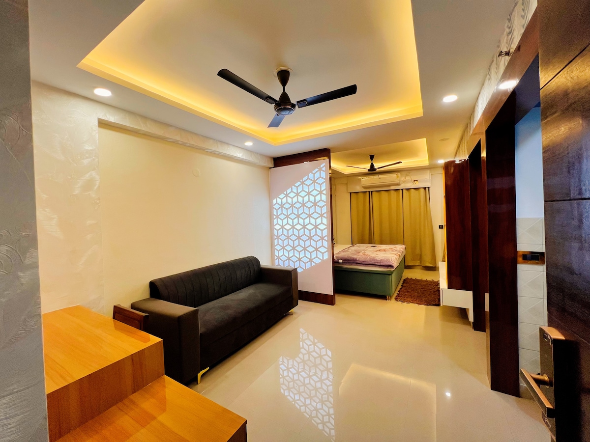 Brand New Studio Apartment! Our place is: - Family / Couple /Bachelor friendly - Fully Furnished with Brand New Equipments - Hygienic and properly sanitised. - 100m away from market with all essentials & restaurants. - Hosted by a Cool Host who is Adventurer, An Avid Traveler and Travel Brands Builder Also Includes: - Fully equipped and Functional Modular Kitchen - Water Purifier, Microwave, Induction, Kettle - High Speed Wifi - Free Parking - Power backup We welcome you to our charming Airbnb.