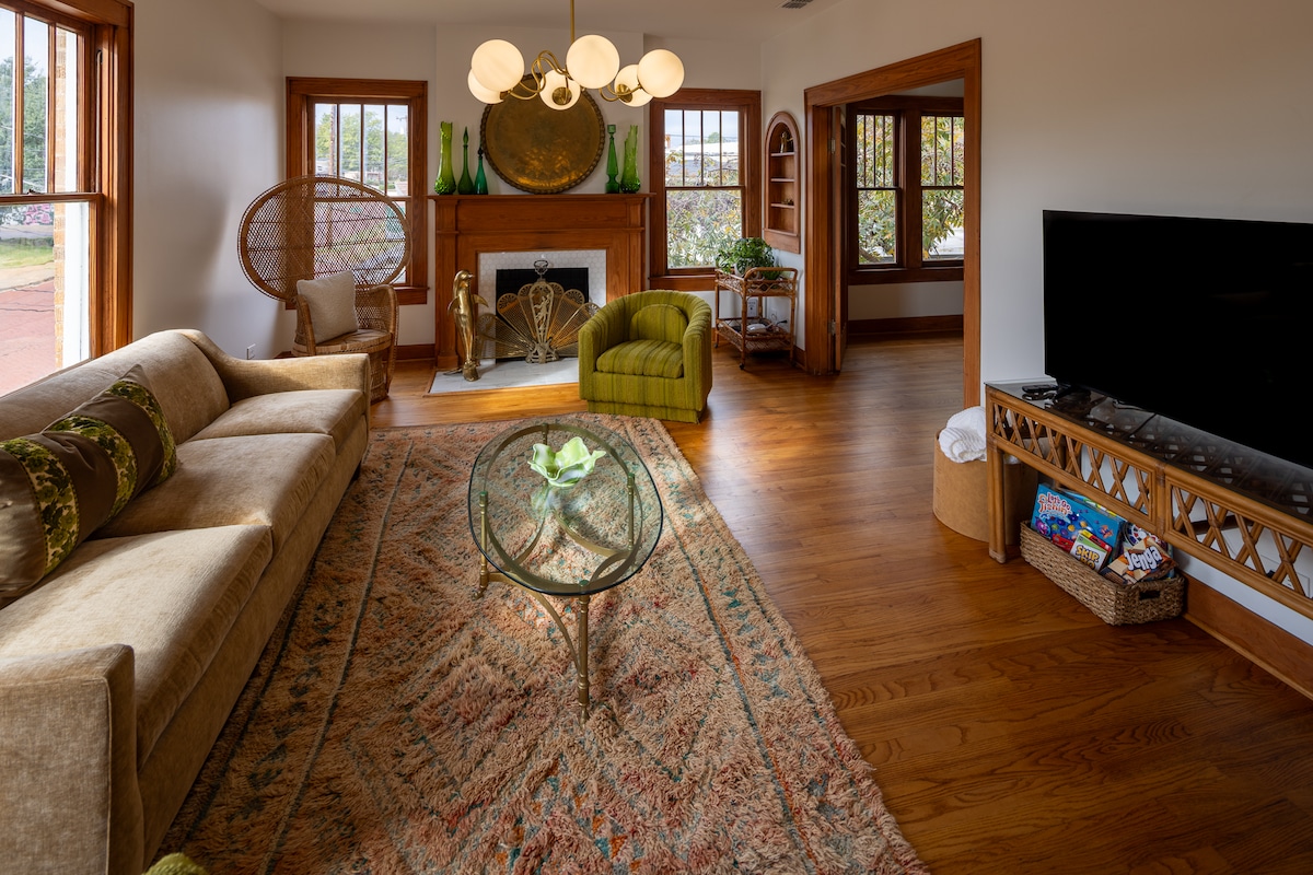 Aproveite as vibrações do fim de semana a qualquer momento. Espaçoso, charmoso de dois andares localizado no histórico Brick Street/Azalea District de Tyler. A uma curta distância a pé de parques, cafés descolados e restaurantes no centro da cidade. Cinco minutos de carro até hospitais e curto trajeto até faculdades. Wi-Fi, cafeteira, chá, lanches de café da manhã ou cozinha completa, se você quiser. Não perca o canto de leitura ou o deck traseiro para relaxar. Portões de bebê para segurança nas escadas. Fora da rua, estacionamento gratuito.