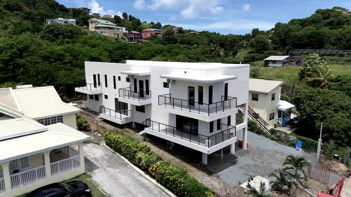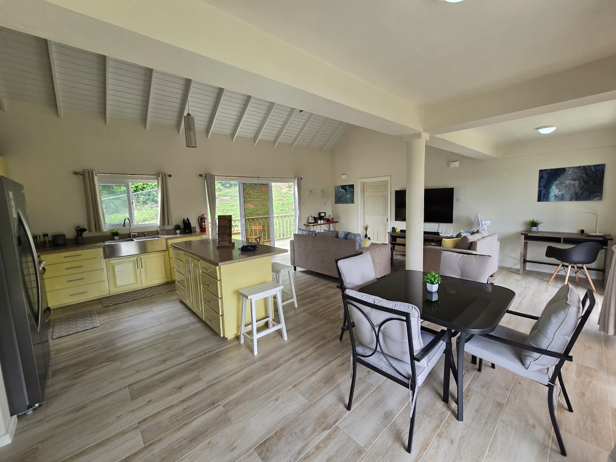 ESTAMOS SUPER FELIZES EM OFERECER AR CONDICIONADO A PARTIR DE 9 DE JULHO DE 2025! Vistas deslumbrantes, pores do sol de tirar o fôlego, ondas para embalar seu sono; pássaros anunciam o dia! Bem-vindo a Ti Zan, nosso refúgio romântico, aninhado acima da nossa VILA ZANDOLI e da praia. Relaxe no nosso grande deck, absorva a tranquilidade do local, vá para a praia; vá explorar. Rodney Bay Village/Marina com lojas, restaurantes, música ao vivo e bares estão a 5 minutos de carro. Trilhas, pesca, spas, vela, golfe, são todos seus - a poucos minutos de distância.