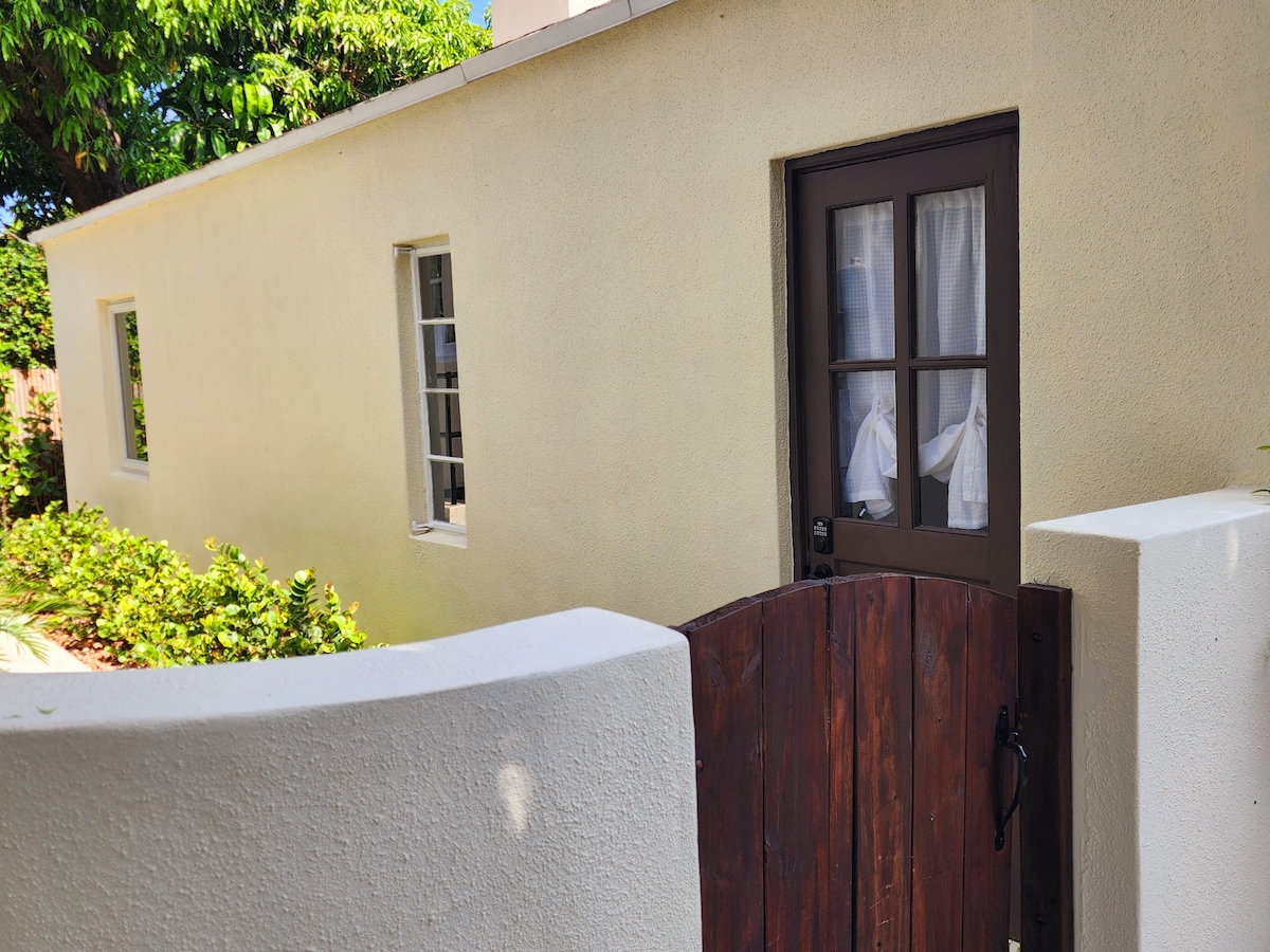 103 anos com um visual novo e fresco! Venha, acabamos de renovar nossos jardins! Relaxe nesta espaçosa casa de campo de um quarto recentemente renovada separada da casa principal com sua própria sala de estar e cozinha. Cerque-se de vegetação e jardins tranquilos enquanto está a poucos passos do coração das galerias de arte e restaurantes da Calle Ocho. Padaria local, mercearia e lavanderia estão ao virar da esquina à sua conveniência. Oferecemos café, chá , 2 garrafas de água, lanches e estacionamento de rua gratuito.