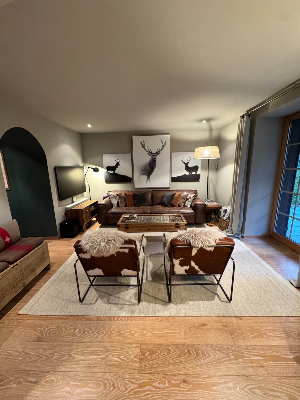 Superbe appartement dans l’une des plus belles résidences du Pays-d’Enhaut. Il offre 3 chambres doubles, 2 salles de bains et un séjour ouvert avec une décoration montagne-chic chaleureuse. Jardin privé avec table et brasero. La résidence dispose d’un salon commun avec cheminée, salle de jeux, spa avec jacuzzi, sauna, hammam et fitness. Situé à 5 min du centre de Château-d’Oex, 8 min des pistes de La Videmanette et 15 min de Gstaad.