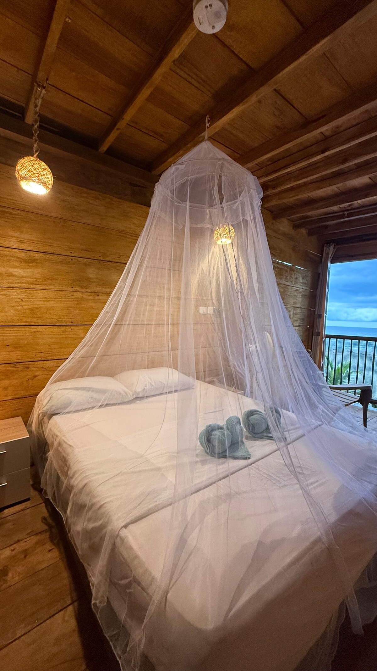 Chalé Guacamaya com jacuzzi e vista para o mar.