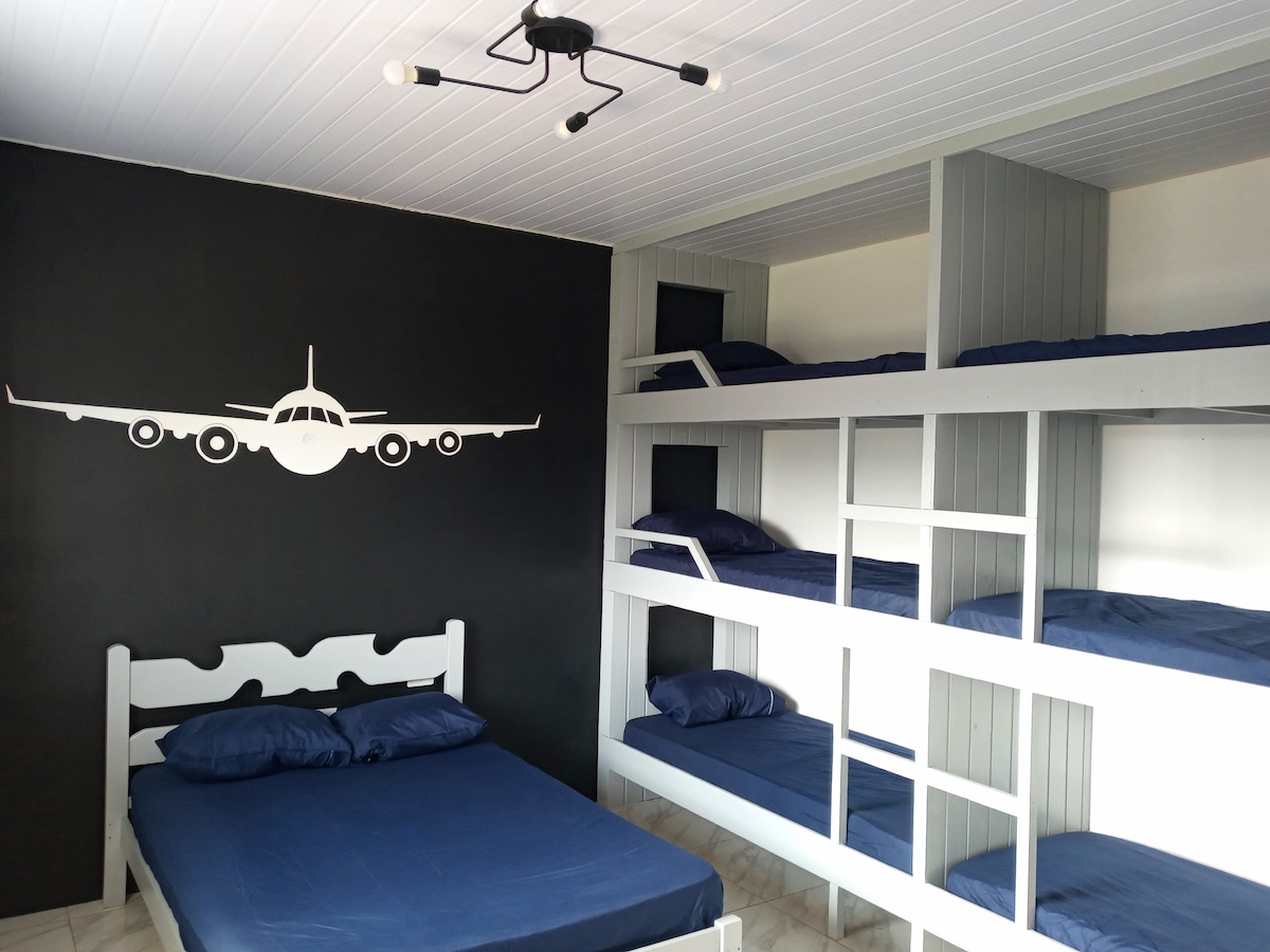 Sobrado com ambiente familiar, seguro e tranquilo. Localizado na rua Marechal Deodoro, esquina com a rua São José dos Pinhais próximo ao hotel Santa Paula, 3 quadras da praia em Guaratuba Pr. Possui smartv, wi-fi, ar condicionado, utensílios domésticos BÁSICOS. Ideal para 4 hóspedes, casal com filhos, pois tem uma cama de casal e duas de solteiro, mas dispomos de um sofá-cama auxiliar.