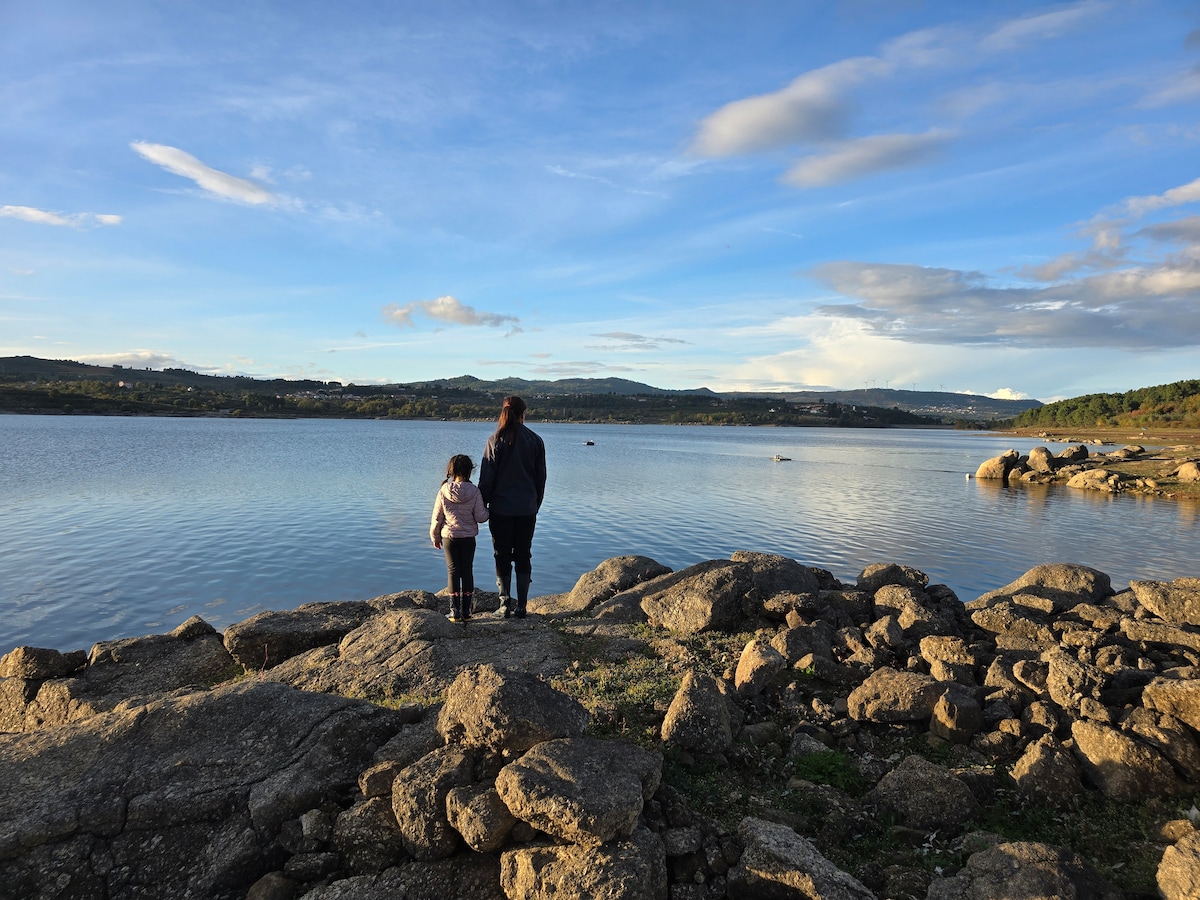 Vistas mágicas para a montanha, aprecie a beleza do centro de Portugal e o parque nacional Serra da Estrela. Observe as estrelas à noite no Hottub XL! Perfeito para uma viagem romântica ou desfrutar da natureza com seus filhos. A minicasa está situada no meio da natureza em nosso pequeno resort de “bem-estar” ZevariClub e tem muita privacidade. Um lindo terraço, mas também sombra suficiente das árvores. Um banheiro de luxo, Nespresso e uma frigobar. Para cozinhar, use o bar/ cozinha do recipiente com decks de observação incríveis! 🤩