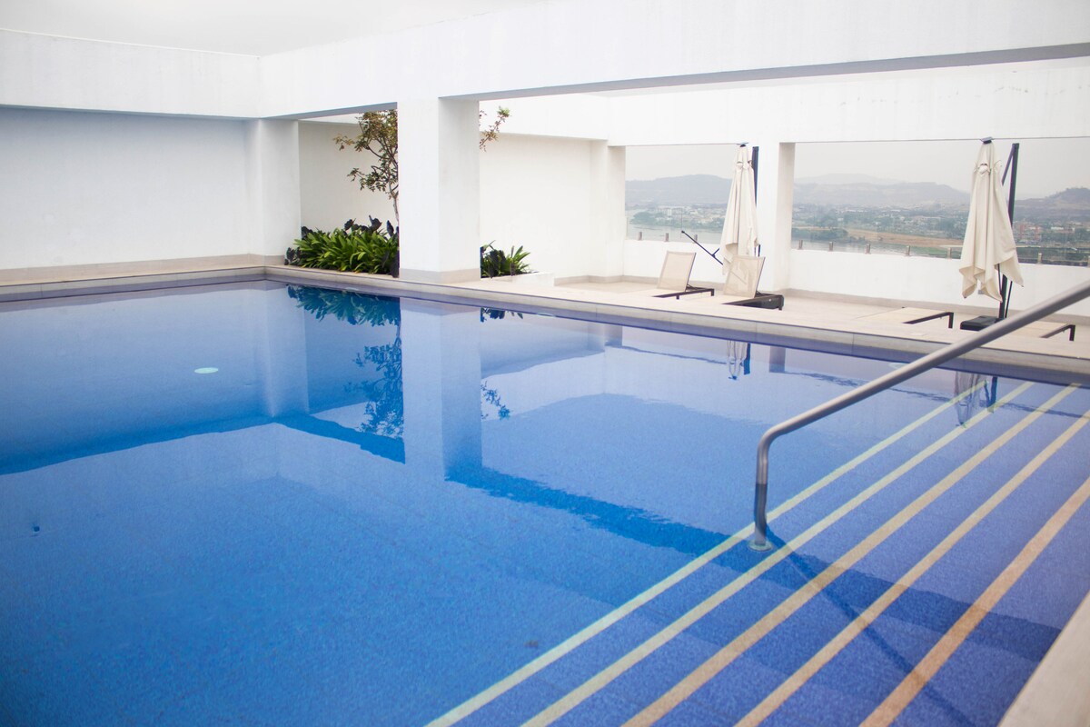 Enjoy the elegance and comfort of our suite in the exclusive area of Puerto Santa Ana, surrounded by excellent restaurants, cafes and outdoor spaces just a few steps away. In addition, you will have access to our social area with a pool, sauna, jacuzzi and gym, with impressive views of the Guayas River so you can relax and have fun during your stay.