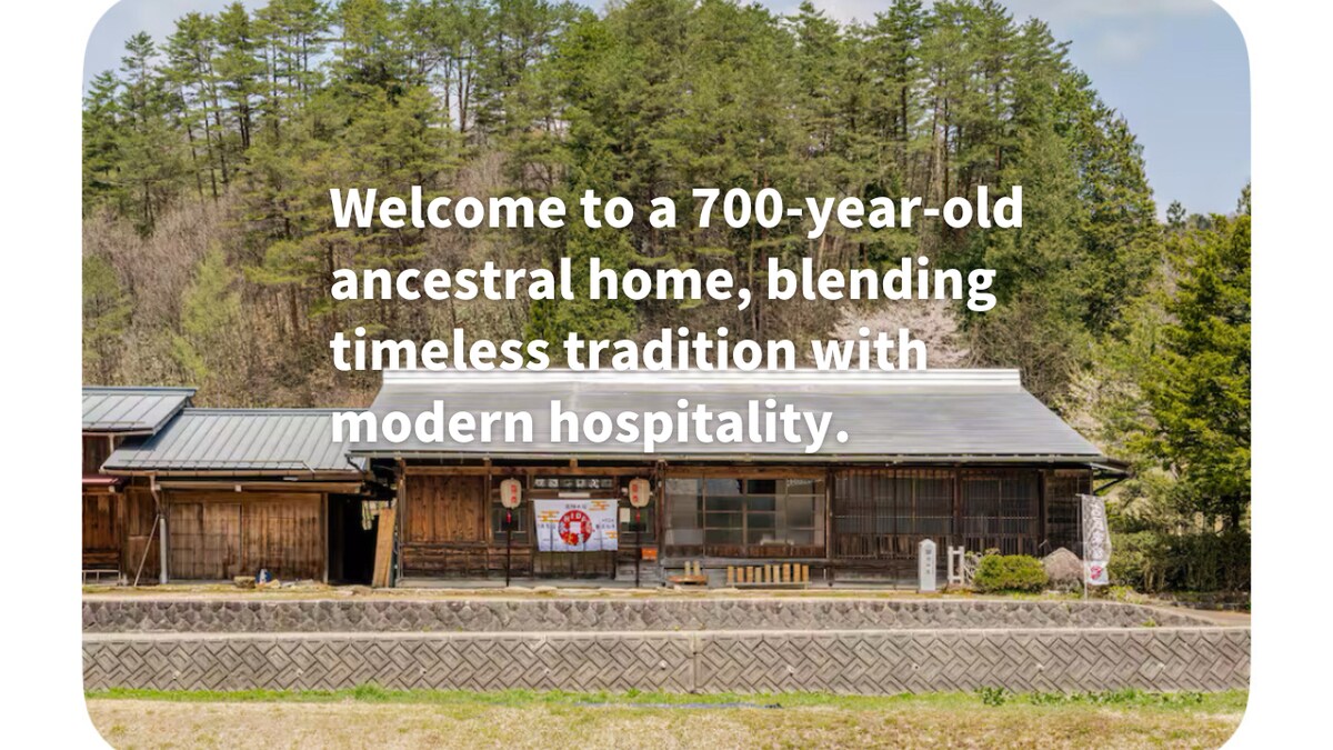 É uma casa antiga construída há 221 anos no centro de Tsumagojuku.A sala de estar 20-tatami tem uma lareira irori (atualmente inutilizável), e você pode desfrutar de uma antiga casa japonesa.Há três quartos, para que você possa acomodar grandes grupos com a família, amigos, etc.Não há comida fornecida.Você é bem-vindo a usar a cozinha completa.No final da sujeira da porta da frente, há um quintal onde você pode passear livremente.Há Wi-Fi e uma mesa de elevação automática, para que você possa trabalhar remotamente para estadias longas.Por favor, divirta-se relaxando nesta casa antiga e tranquila.Aguardamos por te hospedar !