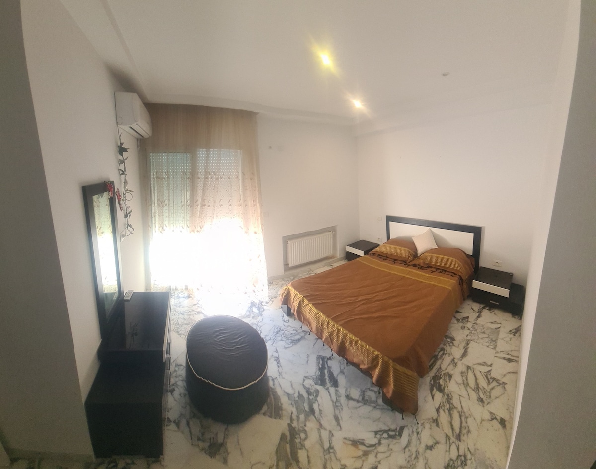 Bonito apartamento com gelosias no coração da cidade velha de Monastir, a poucos passos da estação de táxis e de todas as atrações turísticas. A praia fica a 15 minutos a pé 30% de desconto no SPA no RDC!