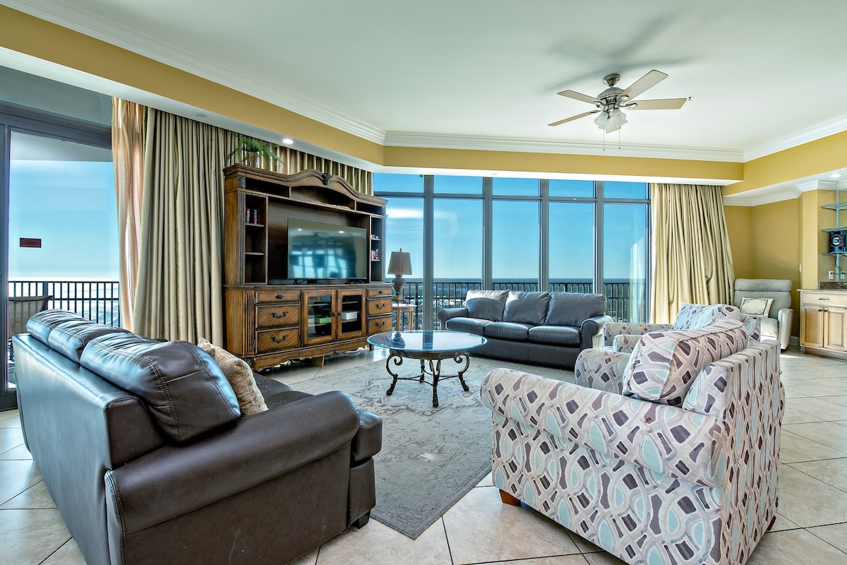 Experimente o luxo costeiro neste condomínio de esquina à beira-mar de 3BR/3BA em Orange Beach, AL. Desfrute de vistas panorâmicas de 180° para o Golfo, luz natural abundante e uma planta aberta perfeita para relaxar ou se divertir. As comodidades incluem uma cozinha totalmente abastecida, Smart TVs com Wi-Fi rápido, uma varanda privativa com refeições ao ar livre e um armário de praia totalmente abastecido. A poucos passos da areia branca de açúcar, ideal para uma escapada inesquecível na praia.
