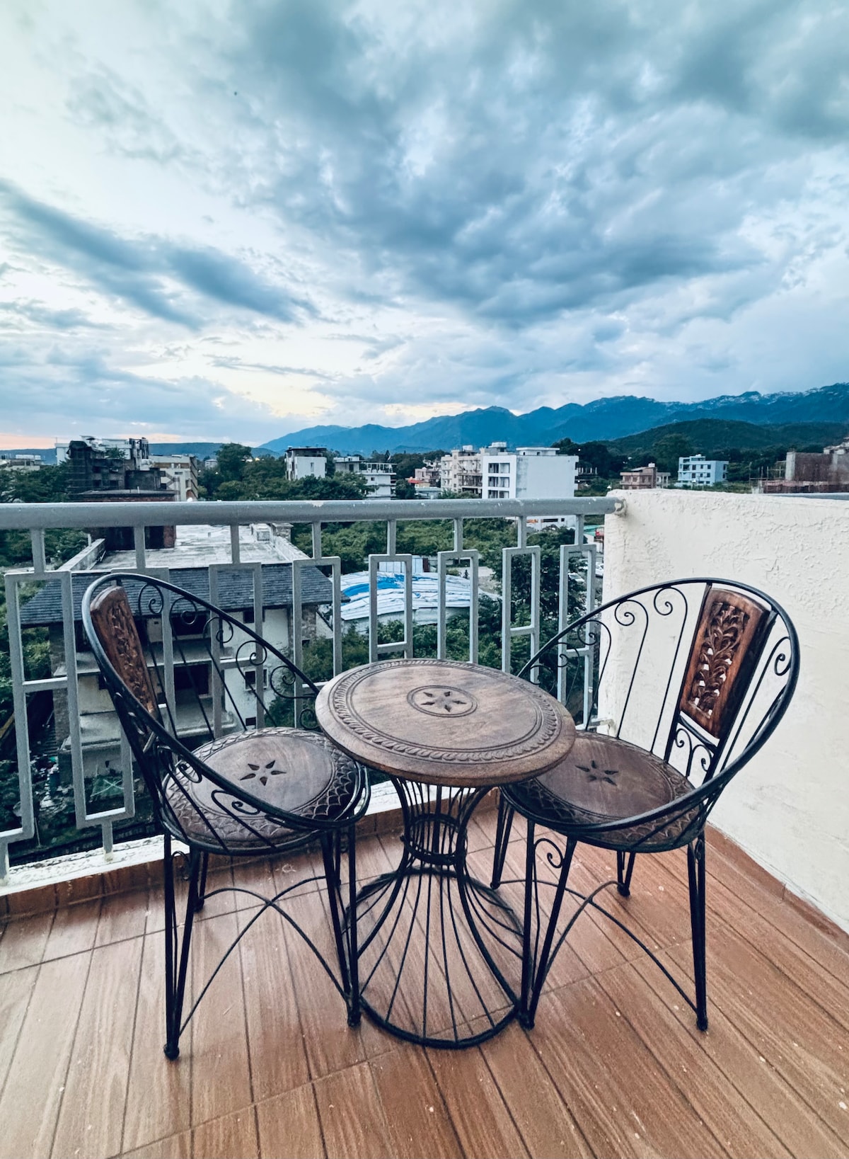 No Go Pahadi, amamos boa comida, ótimos livros e plantas. Nosso jardim é uma mistura heterogênea de ervas, flores, vegetais e árvores frutíferas e adoramos compartilhar nossos produtos — papai é um mestre jardineiro e especialista em Ayurveda com toneladas de histórias e sementes para compartilhar. Outro ponto de encontro durante todo o ano é o nosso Tibari (pátio), onde você terá vistas incríveis de Mussoorie, poderá absorver um pouco de vitamina D, tirar uma soneca à tarde e beber muitas xícaras de chá! P.S. Como eu poderia esquecer? Temos também um forno a lenha para todos os aficionados por pizza!