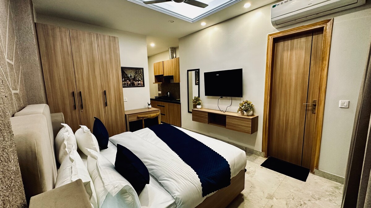 - 1 Bedroom apartment with attached kitchenette and bathroom. - All the necessary amenities for a seamless experience. - Fully equipped with essential appliances and utensils - Fresh towels and toiletries. - Wifi with 55' inch TV (including Netflix, Amazon prime & Hotstar etc). - 6 km from IGI Airport, New Delhi. - 1.3 km from Indian Aviation Academy. - 1.4 km Indian Spinal Injury Center. - 3 km DLF Emporio Mall, Vasant Kunj. - 4 Km from Fortis Hospital, Vasant Kunj.