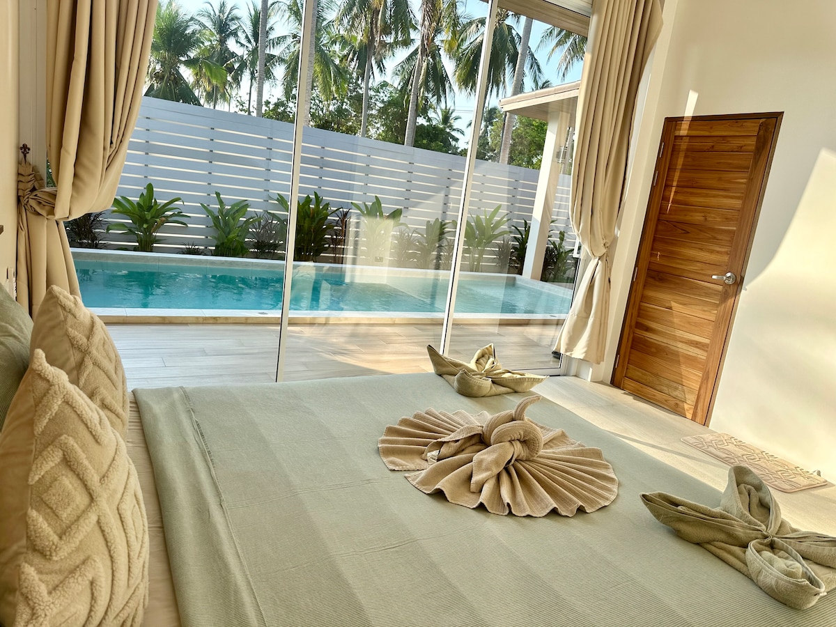 Bem-vindo à nossa luxuosa vila de dois quartos com piscina situada na serena e pitoresca área de Ban Tai, na bela ilha de Koh Phangan. Esta deslumbrante vila oferece uma mistura perfeita de conforto moderno e elegância tropical. Esta vila está idealmente situada em uma localização central. Uma caminhada de 2 minutos levará você à loja de conveniência 7/11 mais próxima, garantindo que você tenha fácil acesso a todas as necessidades que você possa precisar. Em apenas 5 minutos, você pode chegar à deslumbrante praia de Ban Tai!