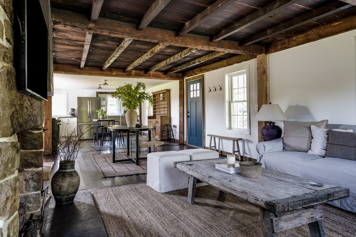 Venha ficar conosco em nossa fazenda histórica! Relaxe no deck dos fundos e desfrute de vistas da nossa propriedade de 12 acres e pastagens tranquilas. Para uma experiência mais prática, junte-se a nós para um passeio para ver mais de perto a vida na fazenda. Fundada em 1739, nossa fazenda tem uma rica história na agricultura e pecuária. O aconchegante chalé em estilo estúdio possui um espaço de estar aberto com quarto combinado, sala de estar e área de jantar, juntamente com uma cozinha e banheiro com chuveiro para seu conforto e conveniência.