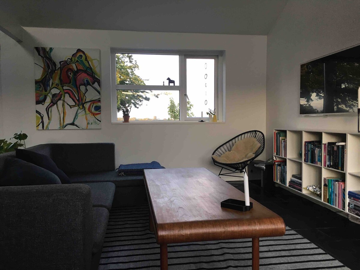 Min bolig lægger tæt på svømmehalen ,fiskesøen og Golf centeret ,som ligger lige ved døren. Skove og natur ,byder plads til lange/korte gå eller løbe turer. Du vil elske min bolig på grund af hyggen, lyset , de komfortable seng og den god udsigt. Min bolig er god til par, familier (med børn), store grupper og lodne venner (kæledyr).