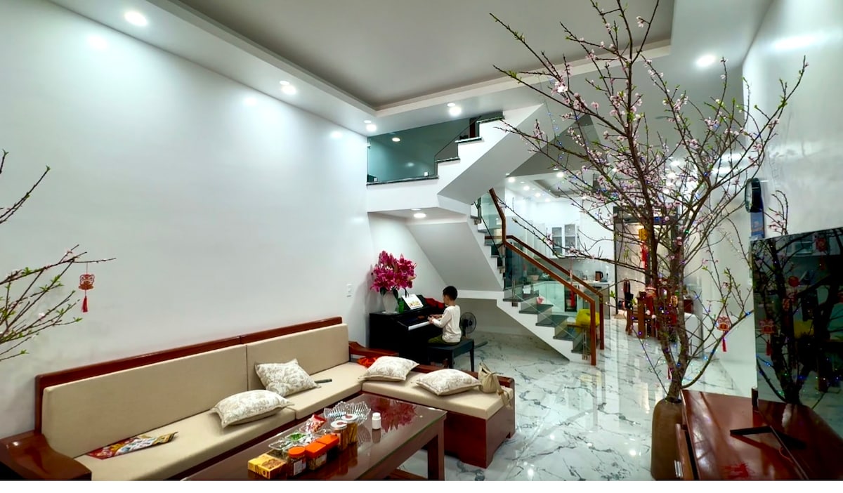 Uma luxuosa, maciça e moderna moradia de 4 pisos com jacuzzi , SAUNA totalmente para si, com excelentes serviços, roupa de cama e roupa de cama. Todos os dias, haverá serviço de limpeza gratuito. A casa está totalmente equipada com comodidades e necessidades para que você tenha umas férias relaxantes com sua família e amigos. É muito conveniente viajar: a apenas 5 minutos do Parque Sunworld Ha Long e do Porto Internacional Ha Long; praia Bai Chay.