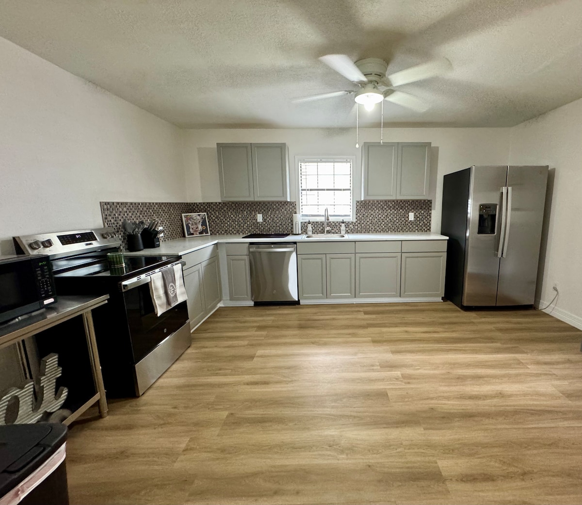 Espaçoso sobrado de 1 quarto com 93 m² localizado em Plainview, bem no corredor da I-27 entre Amarillo e Lubbock. Ideal para profissionais em viagem e para quem trabalha no Abernathy Data Campus ou na Wayland Baptist University. Possui uma configuração de dois andares com tetos abobadados, uma cozinha totalmente equipada para preparar refeições, uma lavadora e secadora privativas na unidade e sofás reclináveis confortáveis. Uma base prática e bem equipada para estadias curtas ou longas.