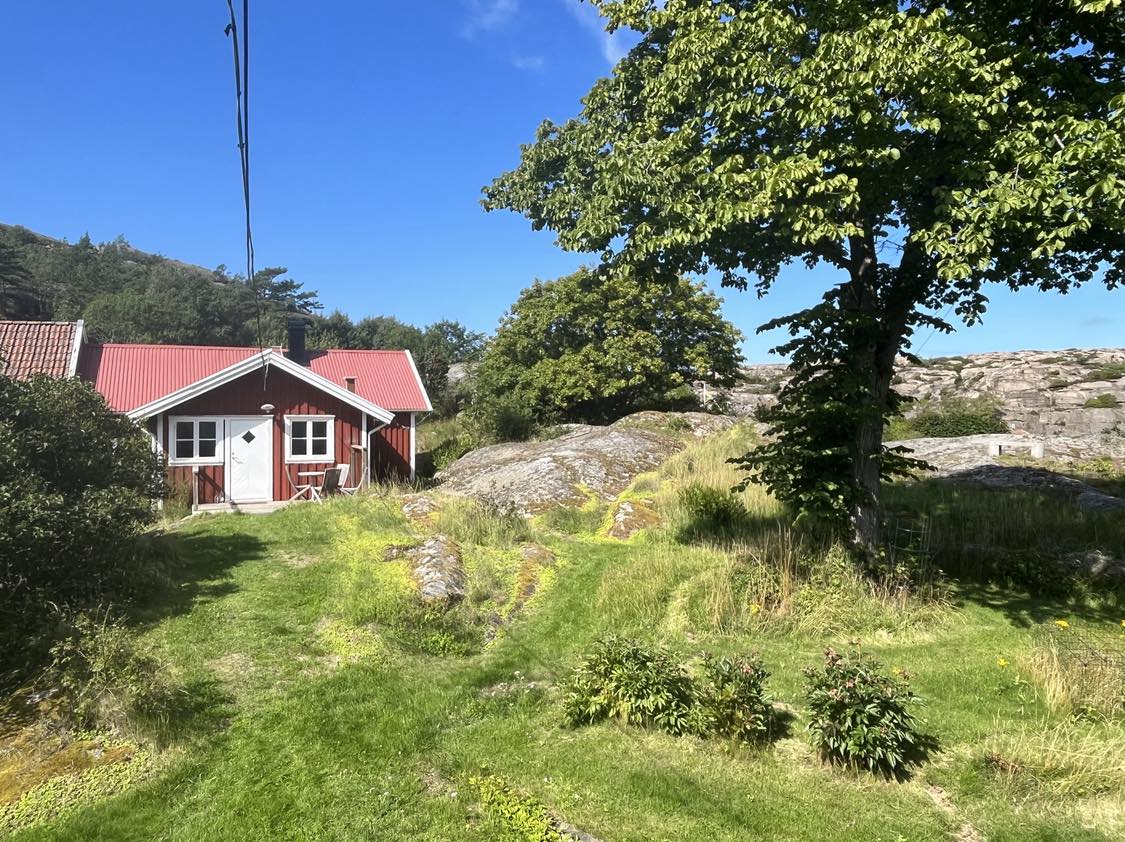 Unikt läge vid havet på egen klippa i lä från västliga vindar. Kök, sovrum och allrum med 4 sängar. Stuga 25 m2, altaner med grill utanför stugknuten. Utedasset med belysning och vatten, har garanterat Sveriges vackraste utsikt. Utedusch med varmvatten skyddad från insyn. Båtvana krävs för att ta sig till den privatägda ön. Lägg till vid bryggan med stabil plasteka ca 5 m med 9 hk utombordare, bra att fiska ifrån. Bada vid den barnvänlig sandstranden mittemot.