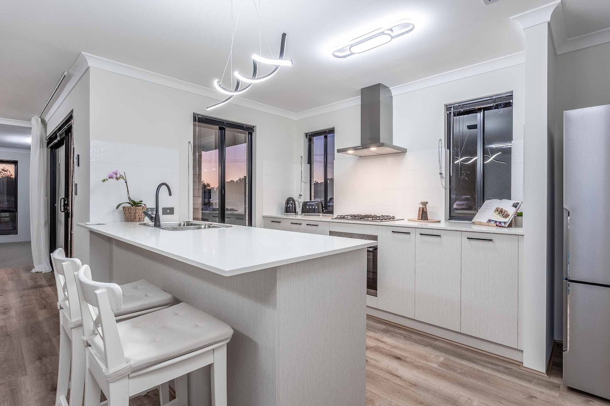 Fuja para a tranquilidade no nosso retiro único - uma casa de campo recém-construída e cheia de personalidade que promete uma estadia inesquecível. Entre no seu refúgio pessoal, um oásis de férias que o transporta para longe da agitação da cidade, enquanto está a poucos passos de distância. A uma curta viagem de 30 minutos de carro da cidade, a 20 minutos da porta de entrada de Swan Valley e a apenas 15 minutos de viagem de Hillarys Boat Harbour. Ansiosamente antecipamos sua estadia, prontos para tornar sua visita uma experiência inesquecível.