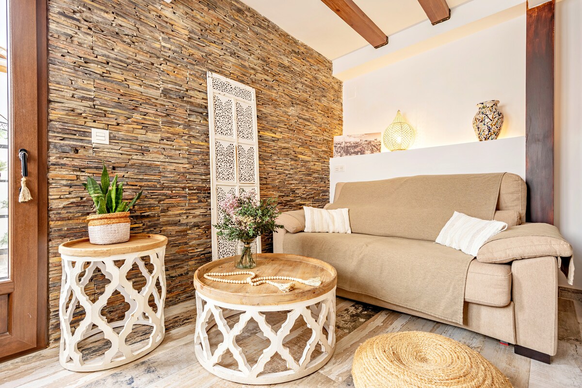 A Carrera del Darro é um dos lugares mais românticos e encantadores de Granada. Este espaço, mundialmente conhecido por sua vista original do Alhambra em contrapicado, oferece uma visão imponente e majestosa do palácio nazarita que encanta todos os visitantes. Logo entre uma das pontes históricas deste passeio, a Ponte Espinosa, e os restos da Ponte Cadi, você pode ficar neste apartamento com decoração cuidadosa que o torna único para uma estadia inesquecível no rio Darro