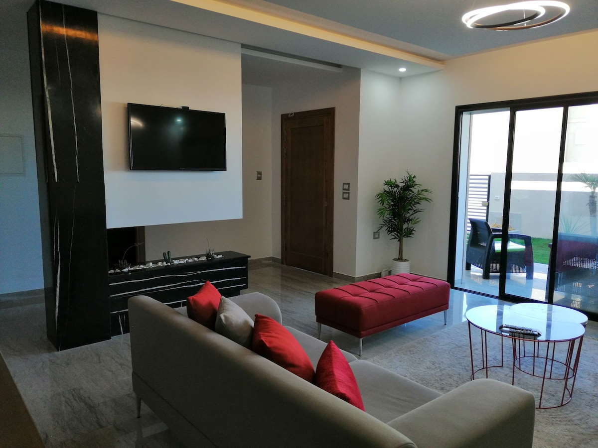 Oferecemos uma vila moderna e refinada a 3 minutos da praia de Mansourah e do Forte de Kélibia. Ideal para uma família ou um grupo de amigos, oferece dois espaços de estar independentes. O piso térreo com cozinha aberta, vista para a piscina privada e jardim convida a compartilhar e relaxar. A vila está totalmente equipada para uma estadia confortável e agradável na praia.