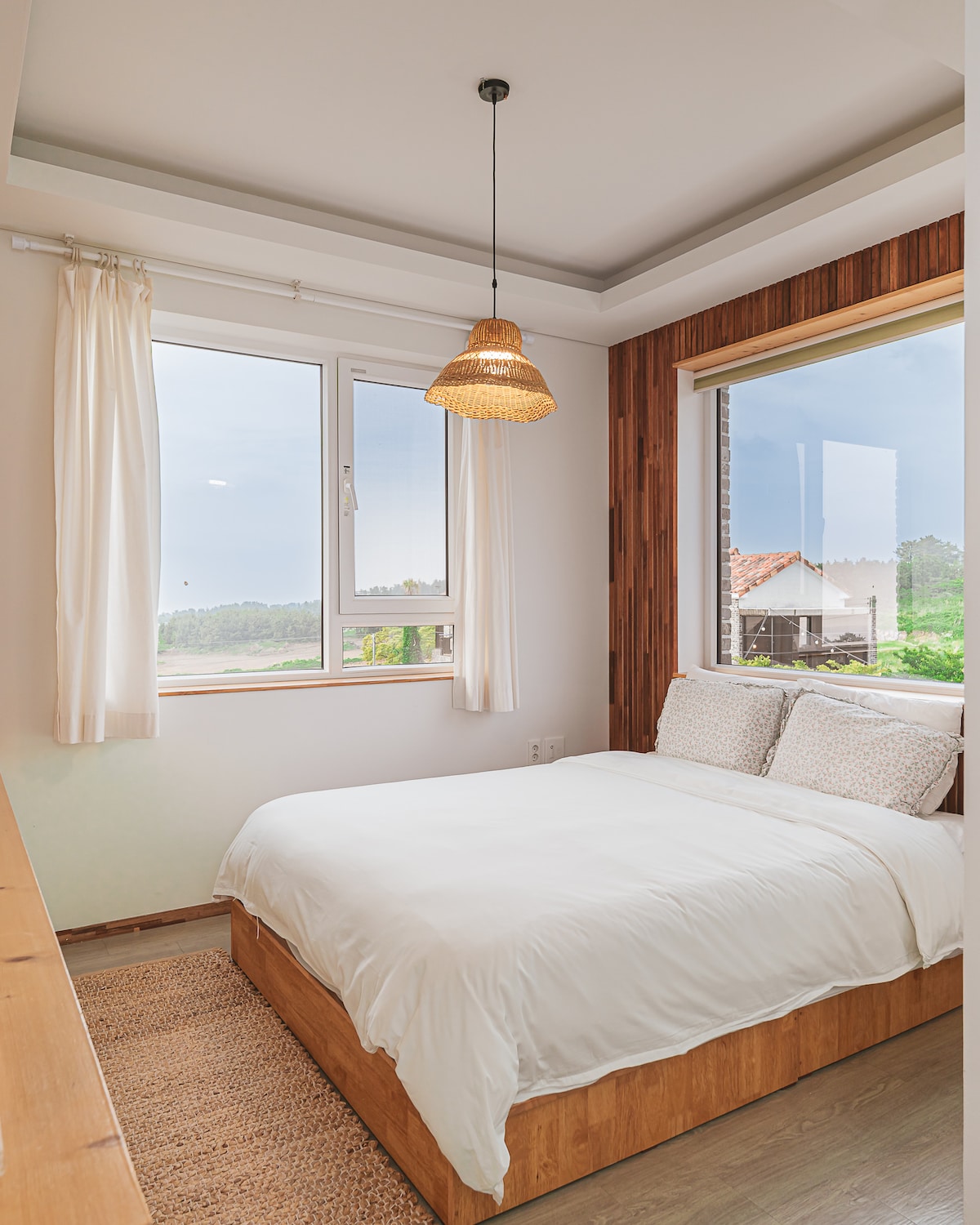 Esta acomodação está localizada em Suwon-ri, Hallim-eup, uma vila costeira a oeste de Jeju. Esta é uma nova casa unifamiliar que foi concluída em abril de 2023. Você pode ver o mar através da janela da sala de estar e você pode ver Hallasan através da janela do quarto. É a melhor localização para viajar para o oeste de Jeju, onde Aewol Handam Beach fica a 10 minutos de carro e Hyeopjae Beach fica a 10 minutos de distância. Ele está localizado na Olle Trail Route 15, para que você possa sentir a atmosfera de Jeju. A estrada costeira fica a 5 minutos a pé, então você pode desfrutar de um passeio ao longo do Olekos na costa. O ponto de ônibus 202 fica a 5 minutos de caminhada. Há uma loja de conveniência a 300 metros de distância, e há mercearias, restaurantes e cafés ao longo do caminho costeiro nas proximidades, para que você possa desfrutar convenientemente de sua viagem.