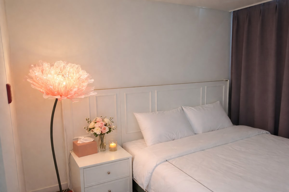 - Está localizado em um lugar onde você pode desfrutar do mar de Romantic Pocha e da Ponte Dolsan de relance. - É um lugar onde você pode satisfazer passeios turísticos e descansar ao mesmo tempo. Confira os eventos✅ do Instagram @ namsandonghouse Água mineral/xampu/condicionador/sabonete líquido/espuma de limpeza/sabonete líquido para as mãos/pasta de dentes/escova de dentes/toalha de banho/barbeador/toalha são fornecidos. Instruções DE hospedagem - Básico 2 pessoas/Max 4ppl - Cozinha simples é possível - Lotte Mall, loja de conveniência, restaurante Yeosu a 3 minutos de distância - A 5 minutos das principais atrações turísticas disponíveis - Estacionamento disponível Espaço e instalações [Quartos] - Cama queen size [Sala de estar] - Conjunto de TV [banheiro] - secador de cabelos [Cozinha] - Frigorífico - Micro-ondas - Fogão infravermelho - Utensílios de mesa e utensílios de cozinha * * Precauções * * - Check-in 16:00, Check-out 11:00 - Não é permitido fumar no edifício - Somente menores de idade não são permitidos. - Não são permitidos animais de estimação - Comida malcheirosa não pode ser cozida - Não mova móveis