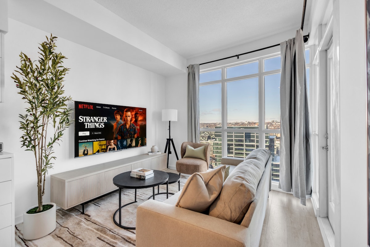 Condomínio de luxo de 1 quarto no centro, perto da Scotiabank Arena, do Rogers Centre e de Harbourfront. Ideal para viagens de negócios, casais e escapadinhas em Toronto. Localizada no distrito financeiro e de entretenimento de Toronto, esta moderna acomodação à beira-mar fica perto das principais atrações, transportes, restaurantes e vida noturna. Aproveite comodidades de 5 estrelas no prédio, um espaço impecável e bem projetado e uma estadia confortável em estilo de hotel. Perfeito para viajantes de negócios, casais e turistas que procuram uma acomodação no centro de Toronto.