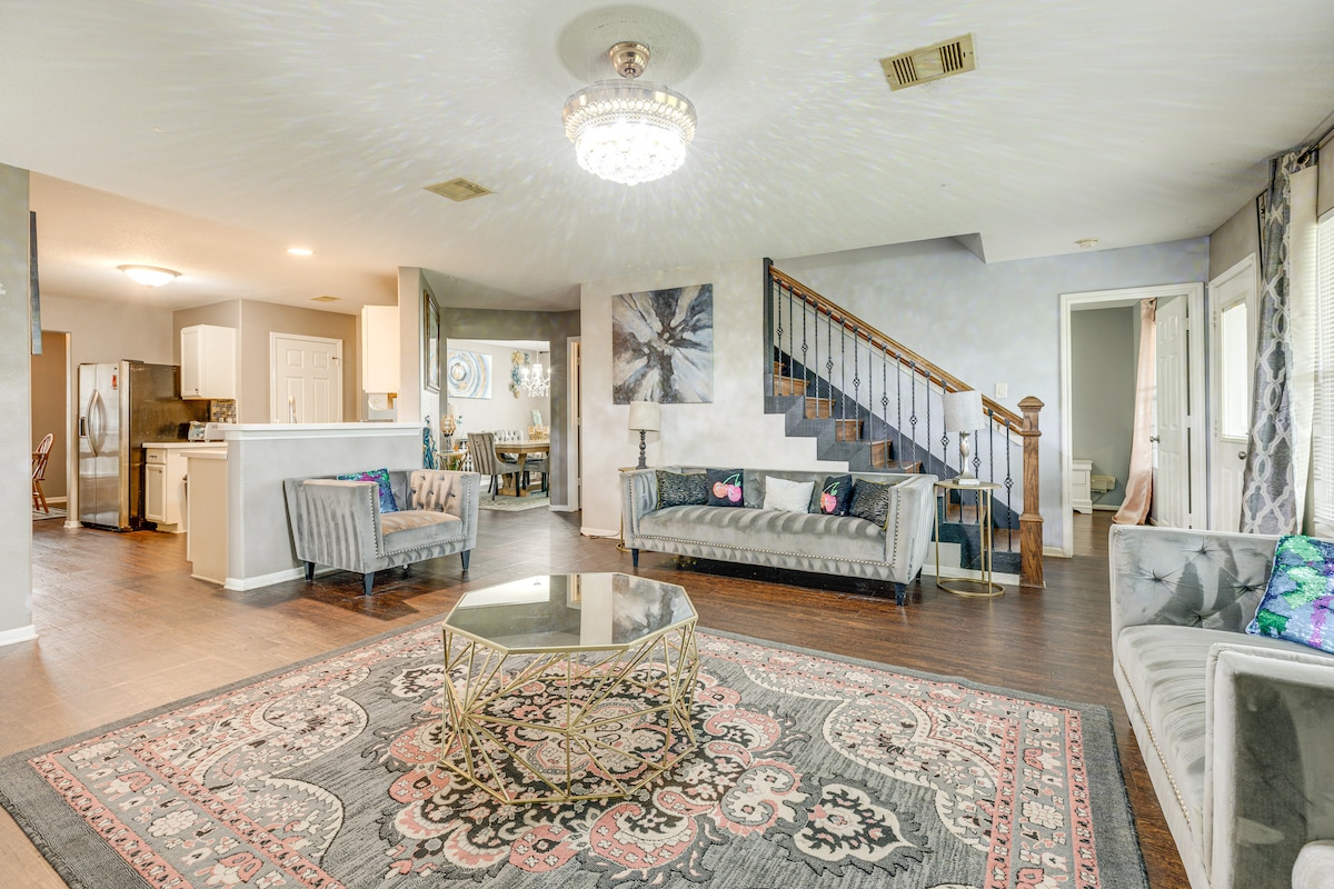 O conforto moderno aguarda você neste recém-reformado retiro em Deer Park. Perfeito para famílias, trabalhadores remotos ou pequenos grupos que buscam conveniência e estilo. ★ 3 quartos | 1,5 banheiros | Acomoda 9 hóspedes Sala de★ jogos: entretenimento e diversão para todas as idades Cozinha ★ totalmente equipada: cozinhe e jante com facilidade ★ Smart TVs em todos os cômodos | Wi-Fi de alta velocidade • Comodidades ideais para famílias • Preparado para trabalho remoto • Itens básicos de cortesia • Áreas de estar espaçosas • Estacionamento conveniente • Acabamentos modernos