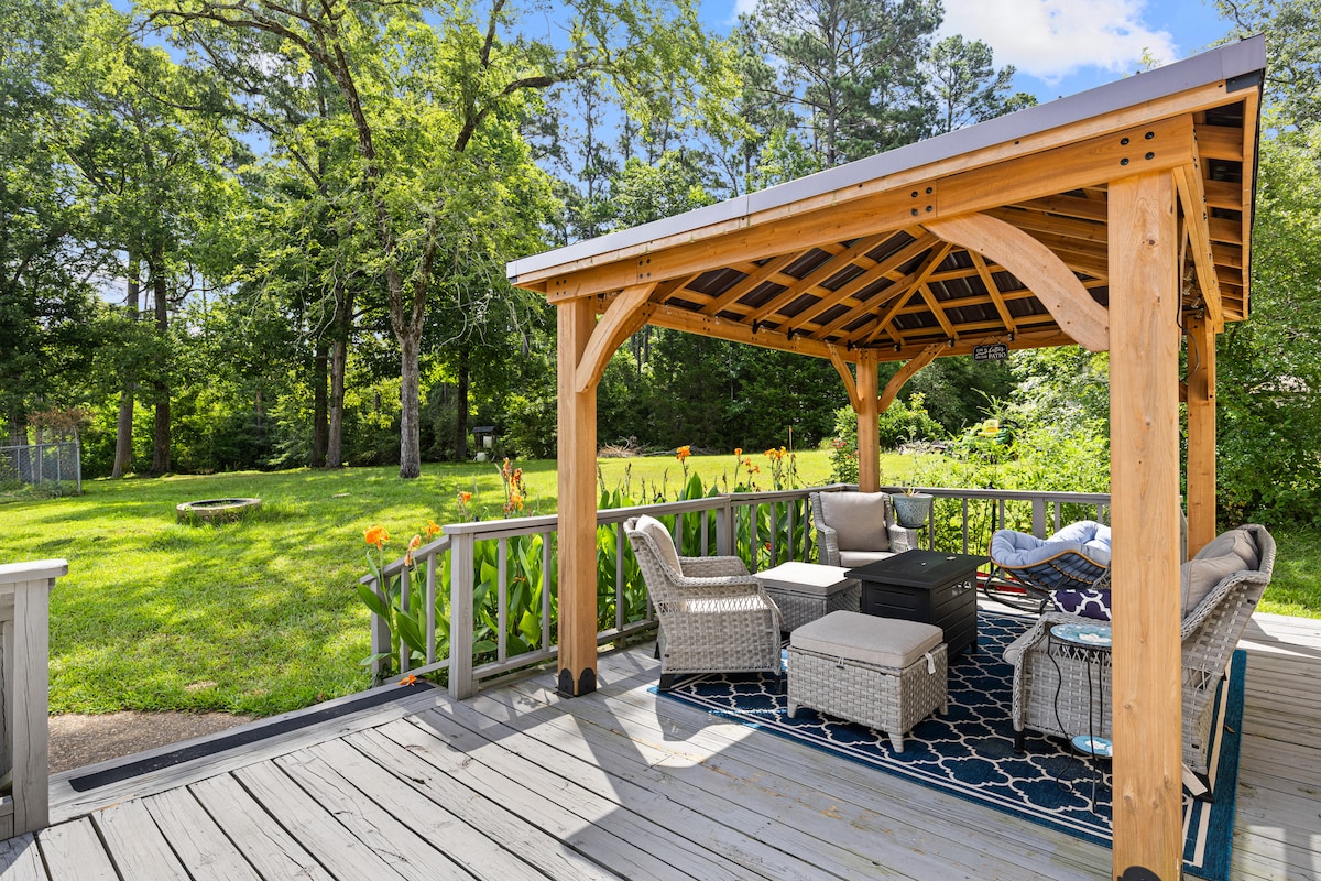 O Bobcat Bungalow tem áreas internas e externas para descansar, relaxar, rejuvenescer e conversar com a família e os amigos. Este bangalô aconchegante tem 2 quartos e 1 banheiro. Pode acomodar famílias, amigos ou apenas uma única pessoa que procura uma escapada. Relaxe no pátio da frente ou no deck dos fundos. Estamos a 30 minutos do Lago O The Pines, a 20 minutos do Bear Creek Smokehouse e a 15 minutos da Vinícola Enochs. Estamos a uma curta viagem de carro de Longview.
