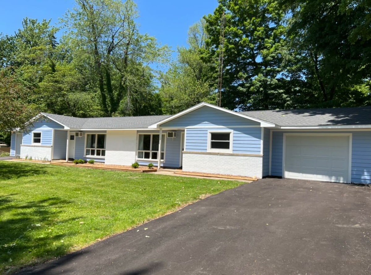 Retiro aconchegante no campo. Se você está visitando para explorar as praias do Lago Michigan (a 15 minutos), a Rota do Vinho da Costa do Lago Michigan, a Rota dos Fabricantes, ou se você é convidado para um casamento no Blue Dress Barn (5 minutos a pé) ou Sundance Studios (1,6 km), este é o lugar perfeito para você! Adormeça sob as estrelas (clarabóia) em nossa nova cama king size e acorde com uma xícara de café em uma cozinha alegre.