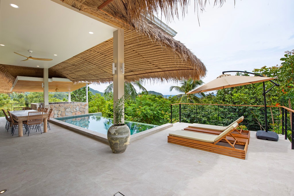 Vila na selva de Koh Phangan com piscina de borda infinita e vista para o mar