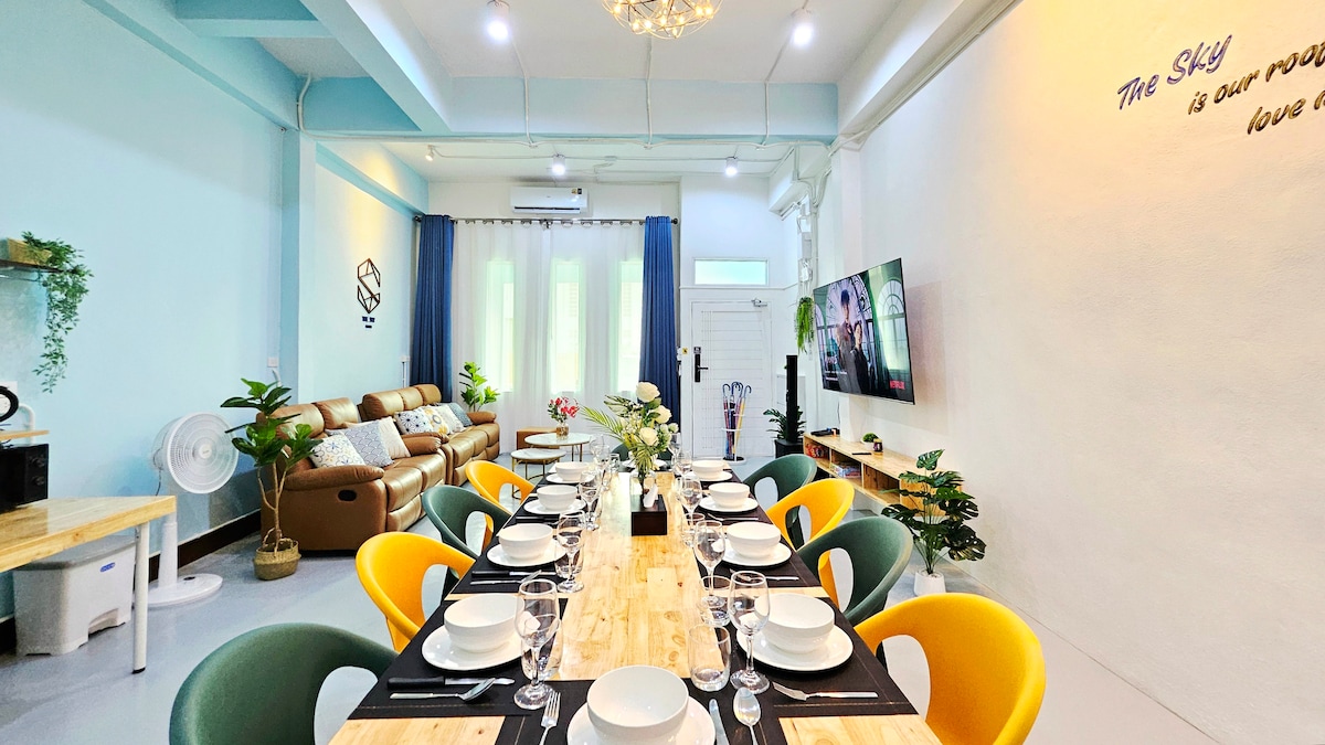 Feche os olhos e imagine um lugar onde a calma passe por cima de você. Isso é o <b>HUG HOME HATYAI</b>. <i>Mais do que uma casa, é um refúgio criado com amor</i>. Cada detalhe sussurra <b>"bem-vindo ao lar."</b> Escolhemos cores suaves e móveis confortáveis, perfeitos para escapar do dia a dia. Com espaço para 8 pessoas, reúna seus entes queridos para uma aventura Hat Yai cheia de risos e memórias compartilhadas em uma casa projetada para a união.
