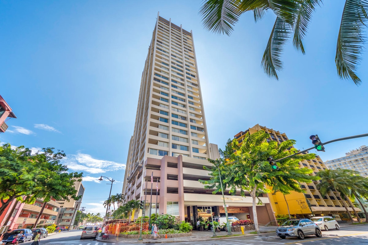 Boas-vindas ao seu refúgio perfeito na ilha para a 'Ohana! Este estúdio limpo e confortável fica no 18º andar de um prédio estilo resort. Apenas um quarteirão da praia e a poucos passos de restaurantes, lojas e cafés locais populares. Nosso refúgio inclui: cama queen size + sofá-cama queen size, cozinha totalmente equipada, Wi-Fi de alta velocidade, TV, jogos de família e equipamentos de praia incluídos para suas aventuras! Venha relaxar e explorar a ilha em nossa casa com a comodidade de uma localização privilegiada!