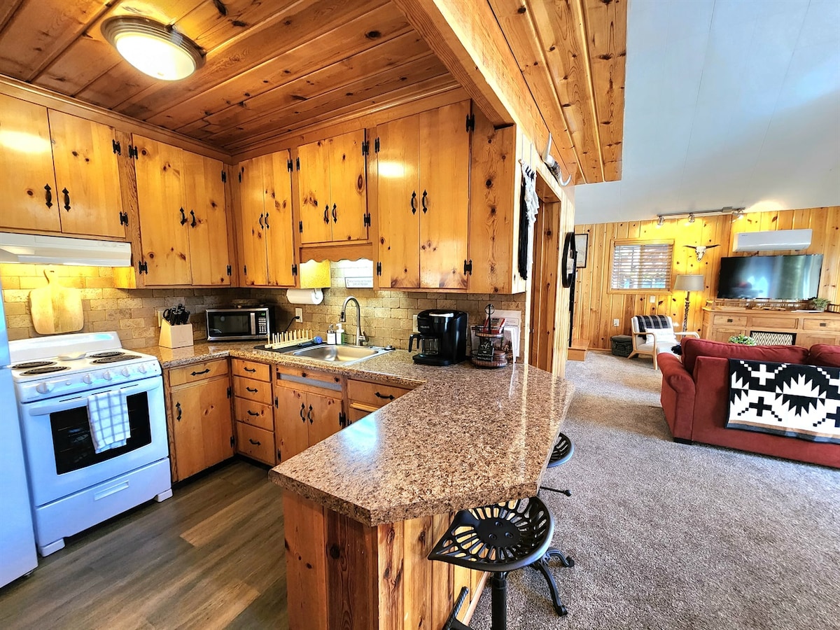 Cabana Pinetop-Lakeside! Esta cabana rústica com estrutura em A combina tradição com comodidades modernas, cercada por pinheiros altos. Aproximadamente 1200 pés quadrados, 3 quartos, 1,5 banheiros, com uma cama king size, queen size, 2 camas completas e futon loft. O quintal totalmente cercado aumenta a segurança, enquanto o grande deck da frente e a varanda coberta oferecem serenidade ao ar livre. Desfrute de ficar aconchegante em ambientes fechados ou passear ao ar livre no ar fresco da montanha e no calor do gás ou da lareira de madeira.