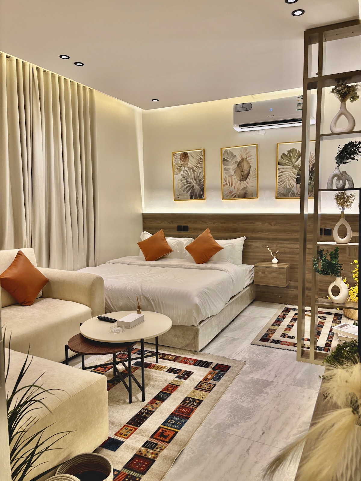 🟢 Um alto padrão de hospitalidade: a tarifa listada é totalmente inclusiva. O IVA de 15% é cortêsmente coberto pelo anfitrião para uma estadia refinada e sem esforço. 🏡 O apartamento é um espaçoso estúdio com sala de estar, com um design acolhedor e tranquilo. Situado no coração de Riade, especificamente no bairro de Al-Muruj, fica a poucos minutos do KAFD, do Boulevard Riyadh, do Boulevard World e da estação de metrô, com acesso rápido às principais vias e aos principais pontos de interesse da cidade.