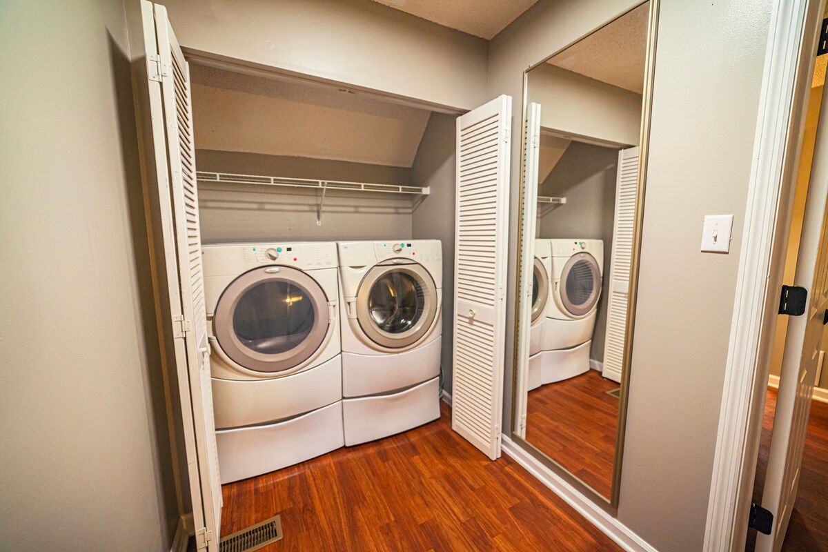 Este apartamento é construído em um porão. Tem sua própria porta, banheiro privativo, sala de estar, sofá grande L, conjunto de bandeja de TV, TV, Roku com Netflix, armário com geladeira, micro-ondas, cafeteira, chaleira elétrica e uma pia. O quarto tem uma cama king size, uma cama inflável queen size que pode ser configurada para hóspedes extras, um sofá, ventilador de teto, armário, mesas de cabeceira, aquecedor portátil, ventilador portátil e uma cômoda. Estacionamento para dois ou mais veículos. Apenas dois adultos vivem no andar principal da casa.