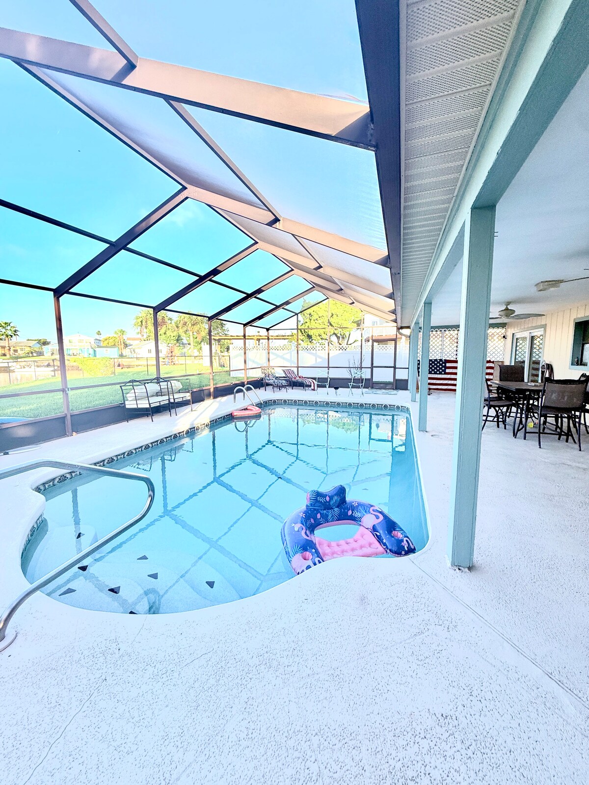 Relax with the whole family or just your favorite person at this peaceful place on the waterfront. Bring your own watercraft or use our kayaks. House looks down a picturesque canal that runs out to the gulf. Sunsets are incredible! Beautiful pool, large deck, & large screen room with ping pong, dining, grill & other entertainment toys create the ultimate environment for relaxing fun. Lots of restaurants nearby, boat rentals, nature preserves & all the essential stores are close by.
