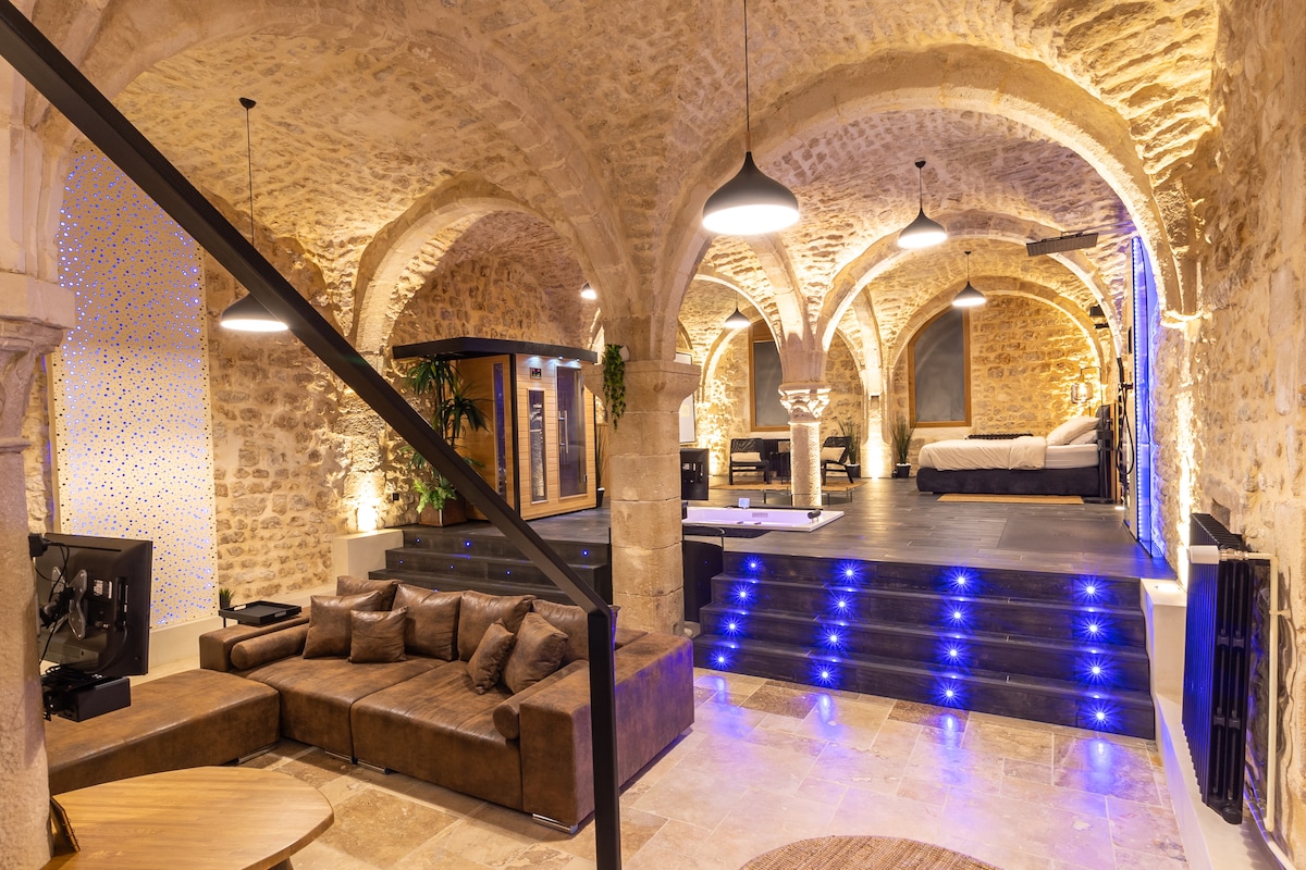 "O ninho dos amantes" é o lugar ideal para casais que procuram relaxamento e tranquilidade. Esta casa de 70 m², totalmente reformada, foi mobiliada e decorada com cores e materiais naturais por uma decoradora viciada. Este casulo aconchegante é o lugar perfeito para se encontrar e passar um bom momento a dois. Os +: jacuzzi, sala de massagem, projetor de vídeo com home theater Belos serviços, decoração cuidadosa e materiais agradáveis, como concreto polido, linho, algodão orgânico...