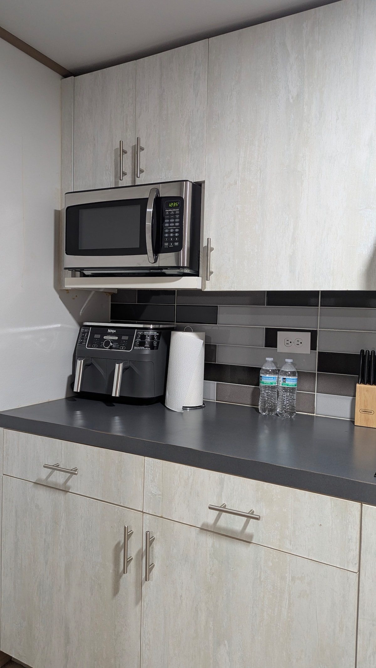 Bem-vindo ao nosso estúdio moderno! Este espaço cuidadosamente projetado tem tudo o que você precisa para uma estadia confortável. Desfrute de uma cama espaçosa, uma cozinha compacta, uma geladeira e um banheiro privativo para uma experiência sem complicações. Relaxe com a TV ou use a área de trabalho aconchegante. Saia para sua área externa privativa com assentos perfeitos para desfrutar de refeições ao ar livre. Convenientemente localizado perto de ótimas opções de refeições e a uma curta distância de carro do Plaza Mall. O estacionamento na entrada está disponível para um carro.