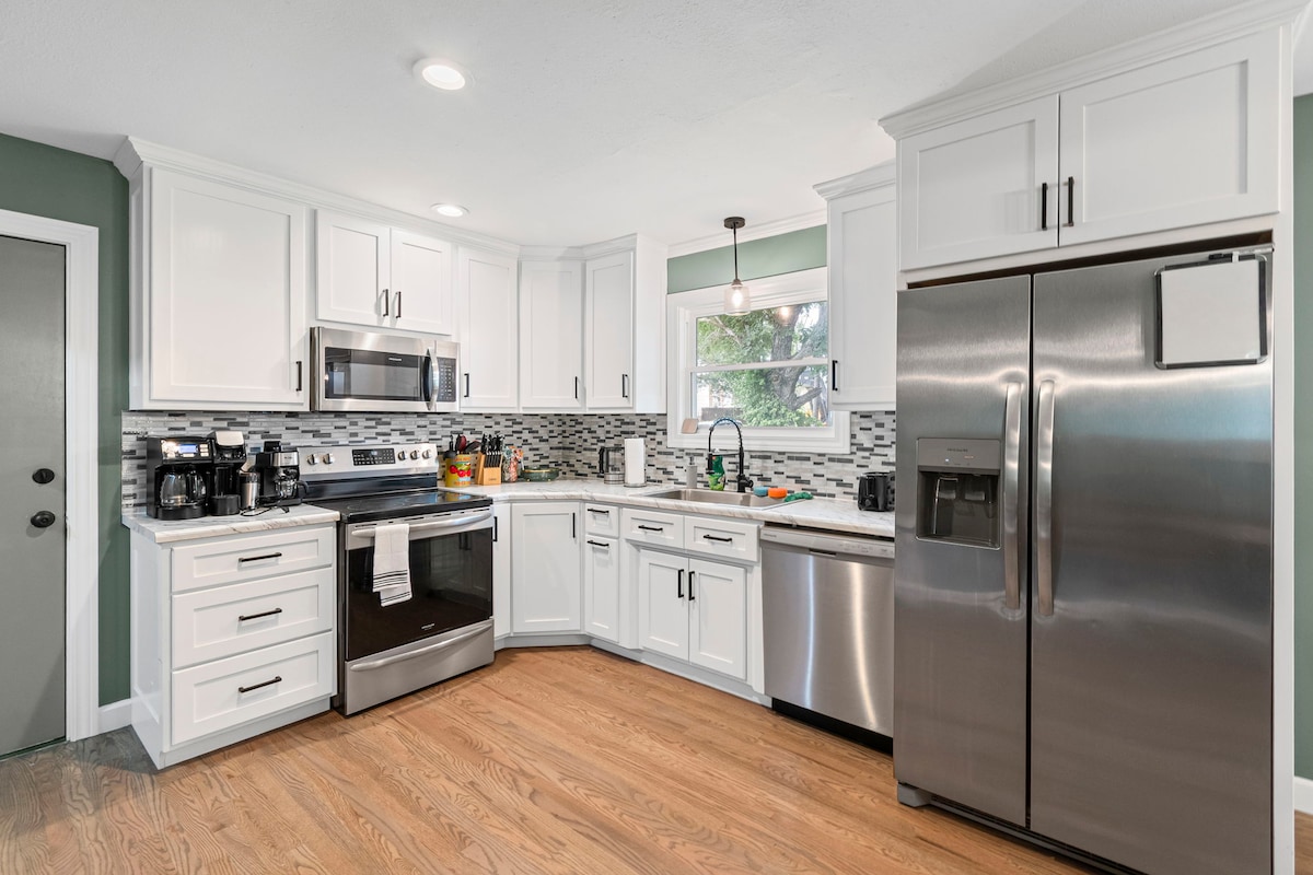 Localizado a cerca de 50 minutos do estádio, com fácil acesso à I-70. Ideal para visitantes da Copa do Mundo de 2026 que viajam com amigos ou familiares e buscam mais espaço e um custo por pessoa mais baixo do que os hotéis de Kansas City. Esta casa totalmente reformada, com 2 quartos e 1 banheiro, acomoda até 8 pessoas, com um quarto com cama king size, um segundo quarto flexível com cama king size ou duas de solteiro e um sofá-cama queen size. Cozinha completa, banheiro amplo com box de vidro, Wi-Fi rápido, varanda relaxante, a 2 quadras do centro de Concordia e a menos de 1,6 km da I-70.