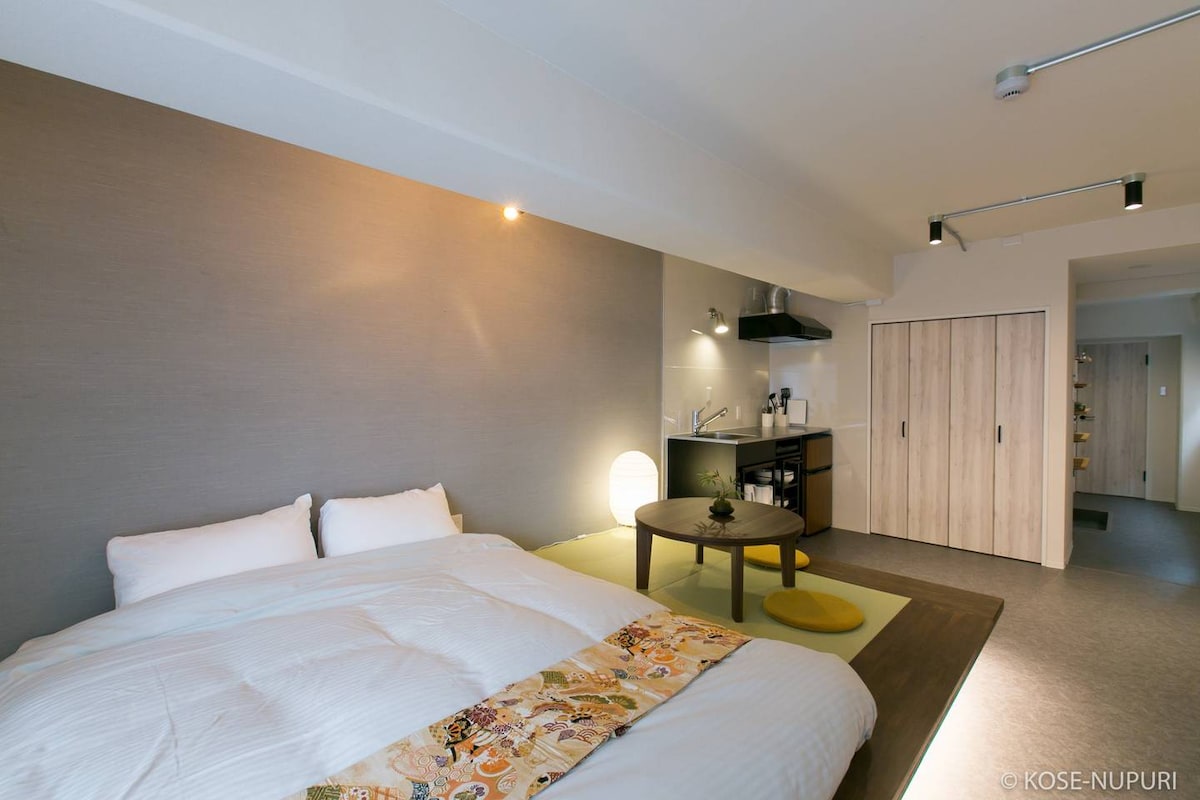 Perfect location for your stay 5 mins walk to Reach and around by the local area . less than 15 mins can reach Hiroshima JR station directly by street car This unit provides - 1 Queen size bed 2 Japanese futon comfort for max 4 people stay. The entire unit are new and provide Hotel standard amenities. Kitchen / Bathroom / Washing machine with dryer function and Wifi in the room. Please note: Cleaning is done one time only after you check out