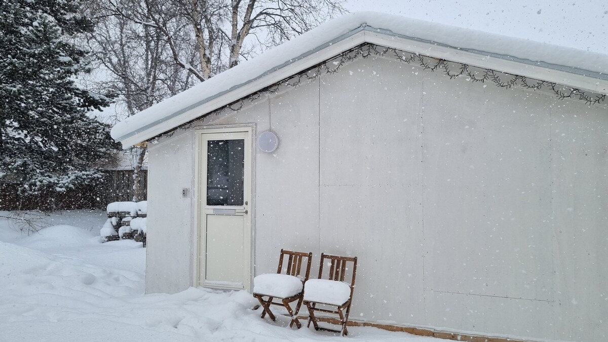 Número registrado:- HG-00020047. A cabana tem 15 m2 e é uma joia escondida em nosso jardim com vista para o fiorde em frente a Akureyri. A cabana foi concluída em abril de 2020. Há uma cozinha americana com uma chaleira, micro-ondas e geladeira. O banheiro é separado por dentro com um lavatório. A cabana é privada e há um deck meio envolvente para desfrutar das vistas noturnas e do céu da meia-noite. Há um chuveiro externo com água quente para uma experiência natural. Todos os produtos na cabine são livres de fragrâncias.